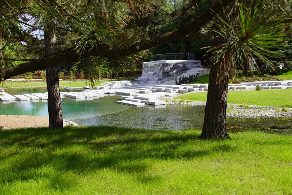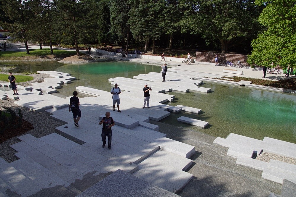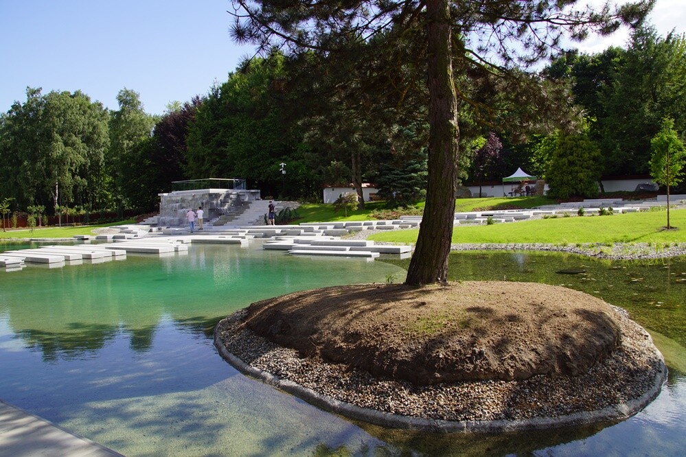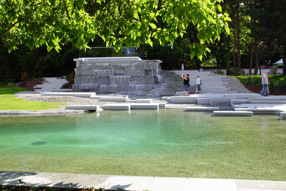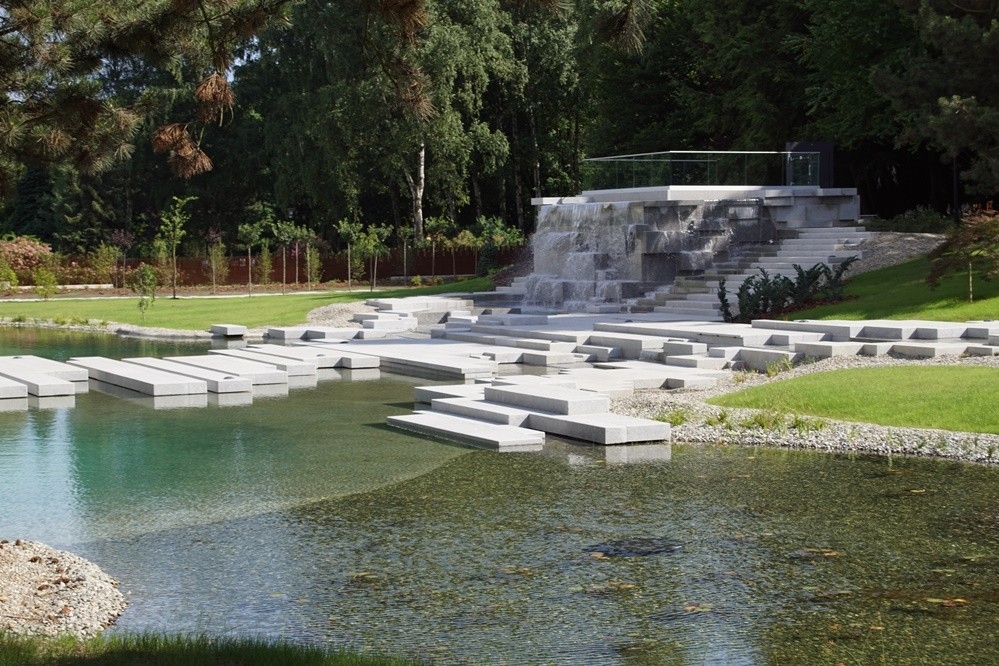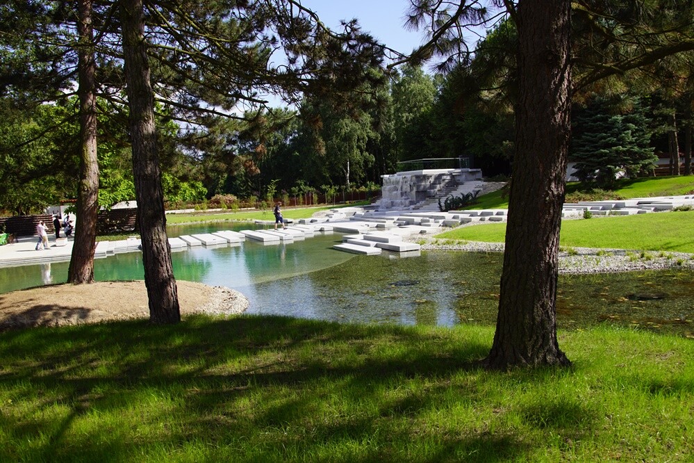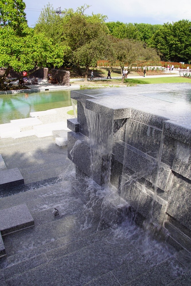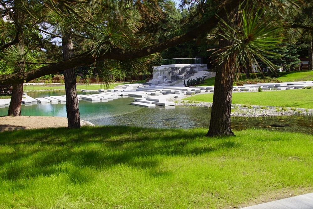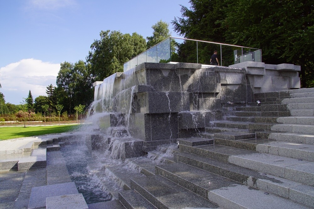 - Całość systemu zaprojektowano z wykorzystaniem istniejącego ukształtowania terenu. Przy użyciu granitowych bloków wodę skierowano w dół, tworząc urokliwy wodospad. Całość można podziwiać z przeszklonego tarasu widokowego. W jego pobliżu znajduje się ogród Zen, w tym miejscu można zobaczyć nieregularne głazy i roślinność, które są otoczone odnowionymi murami - czytamy na stronie Parku Śląskiego.