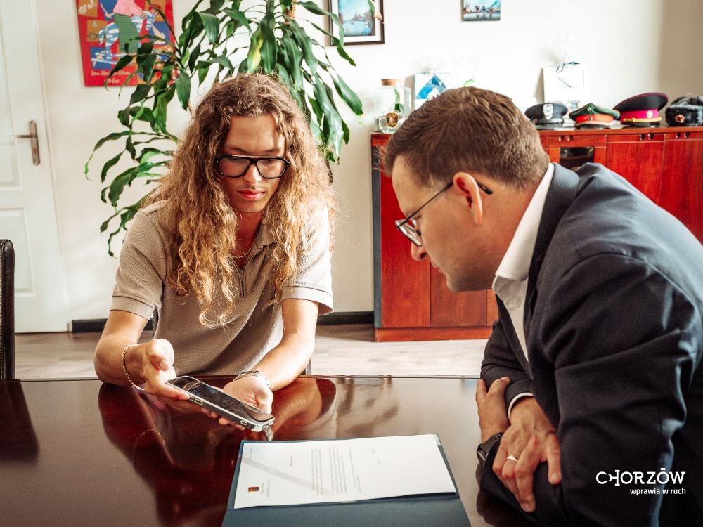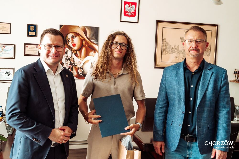 Młody chorzowianin, Oliwier Łukaszczyk ma wyjątkową pasję – uprawia skimboarding. Ma na swoim koncie wiele sportowych sukcesów, w tym dwukrotne mistrzostwo Europy. Spotkał się z prezydentem Szymonem Michałkiem i wiceprezydentem Jackiem Króliczkiem, aby opowiedzieć nieco więcej o tym wyjątkowym sporcie.