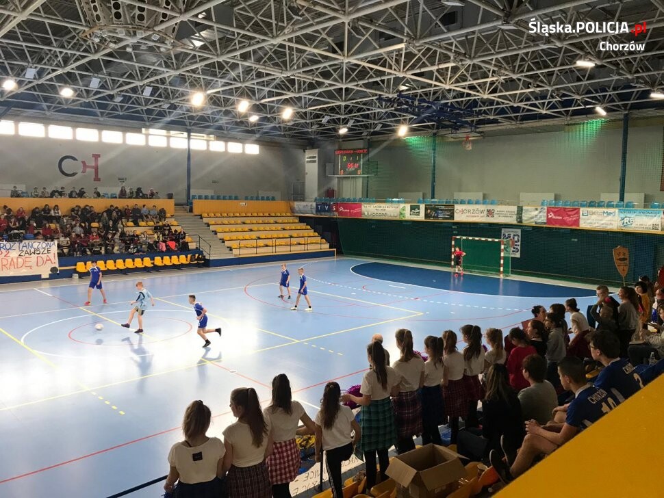 W ramach programu "Bezpiecznie kibicuję– mądrze dopinguję – młody kibic”, w hali sportowej Moris przy ulicy Dąbrowskiego, uczniowie ze szkół podstawowych nr :2, 12, 22,24,25 wzięli udział w międzyszkolnych rozgrywkach piłkarskich. Podczas tego spotkania nastolatkowie rywalizowali ze sobą o najlepszy i kulturalny doping oraz oprawę meczu piłkarskiego. Były okrzyki, tańce i cheerleaderki. Na ławce sędziowskiej, oprócz przedstawicieli Urzędu Miasta, Straży Pożarnej i Straży Miejskiej zasiadała policjantka z Zespołu Profilaktyki Wydziału Prewencji chorzowskiej komendy. Jury w czasie meczów oceniło prezentację, zachowanie uczestników oraz doping dla swojej drużyny. Zwycięzcami I etapu rozgrywek zostali uczniowie szkół 22,24 i 25.
