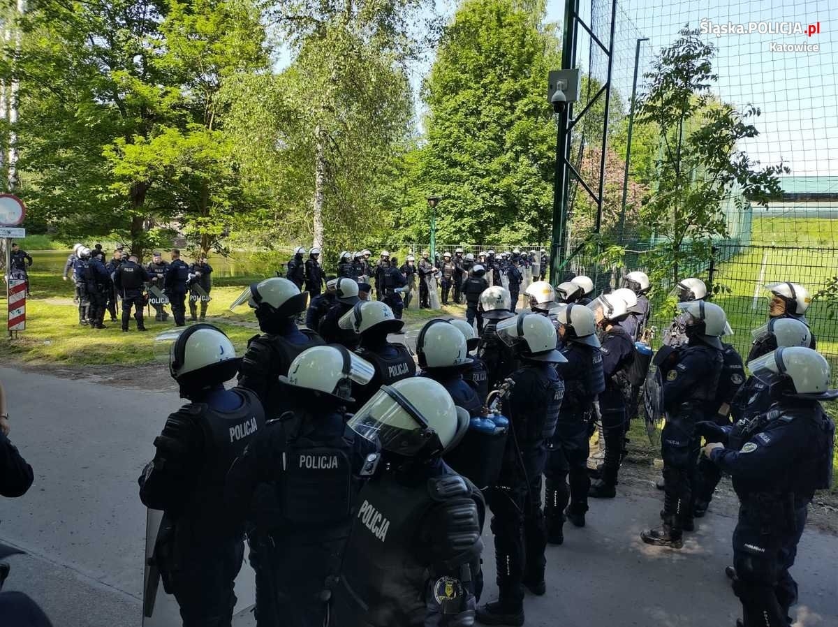 Spotkanie piłkarskie dwóch śląskich drużyn zabezpieczało prawie 600 policjantów, którzy wylegitymowali 528 osób i nałożyli 14 mandatów karnych. Czynności w sprawie identyfikacji osób, które dopuściły się przestępstwa podczas imprezy masowej, prowadzą policjanci z Wydziału dw. z Przestępczością Pseudokibiców KMP Katowice. Przypominamy, że za posiadanie materiałów pirotechnicznych, zgodnie z ustawą o bezpieczeństwie imprez masowych, grozi kara nawet do 5 lat wiezienia.