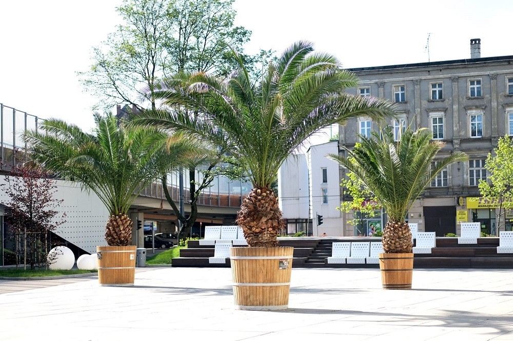 Pierwsza palma stanęła na zmodernizowanym rynku w Chorzowie tuż przed jego oficjalnym otwarciem w ubiegłym roku. Była wypożyczona z Gliwic tylko na tydzień, ale tak przypadła do gustu, że prezydent miasta zdecydował, iż zostanie na zawsze. Później dołączyły do niej dwie kolejne. Mieszkańcy Chorzowa w internetowym głosowaniu nawet wybrali im imiona - padło na Hildę, Trudę i Bercika!