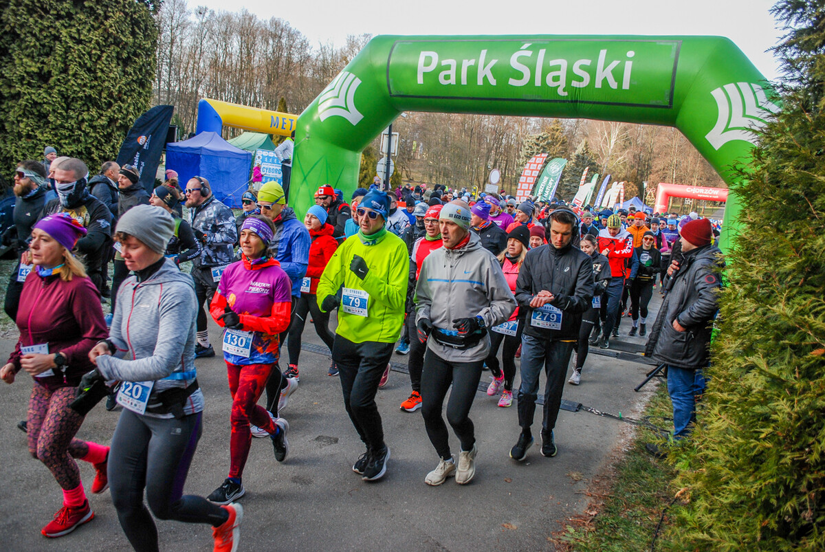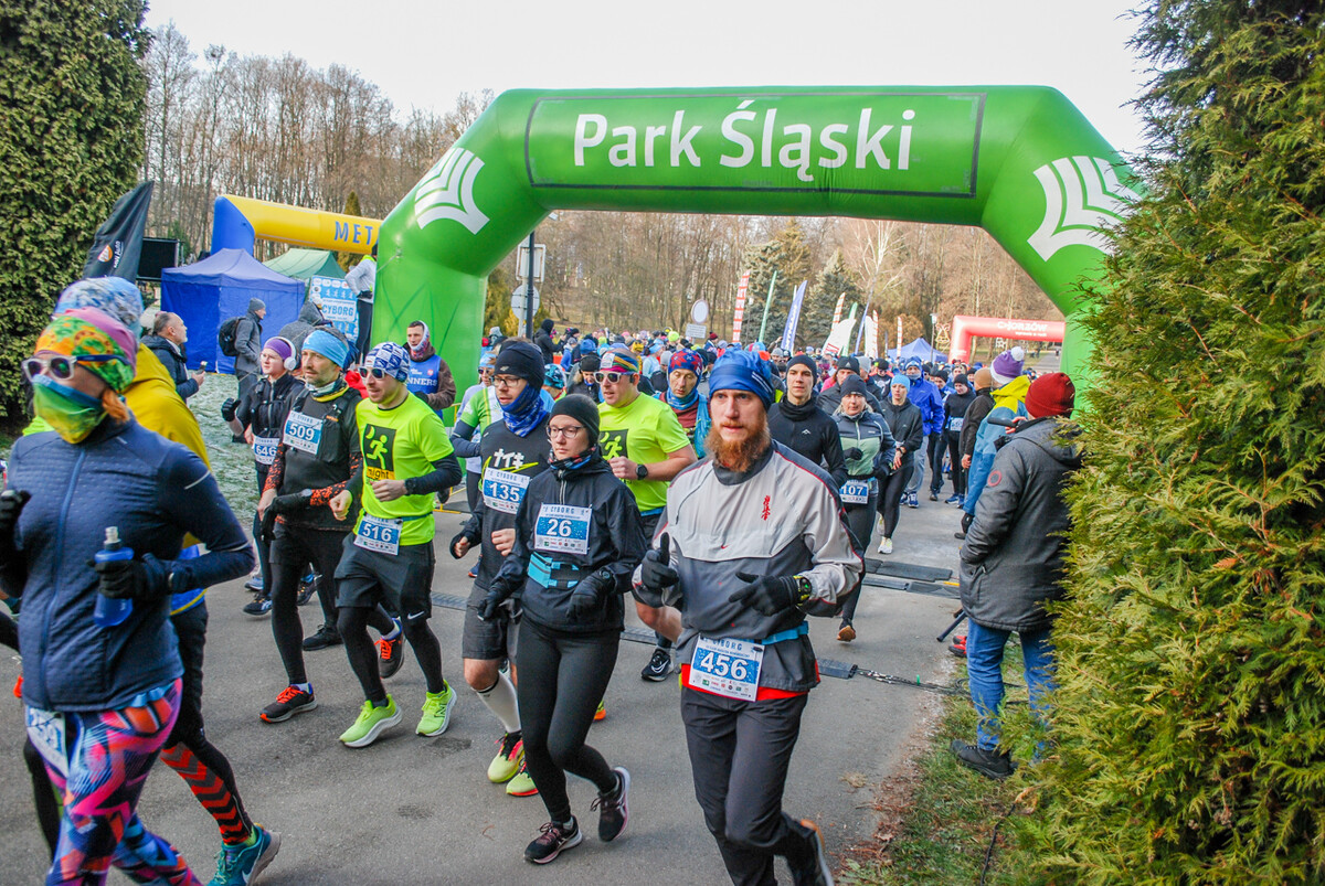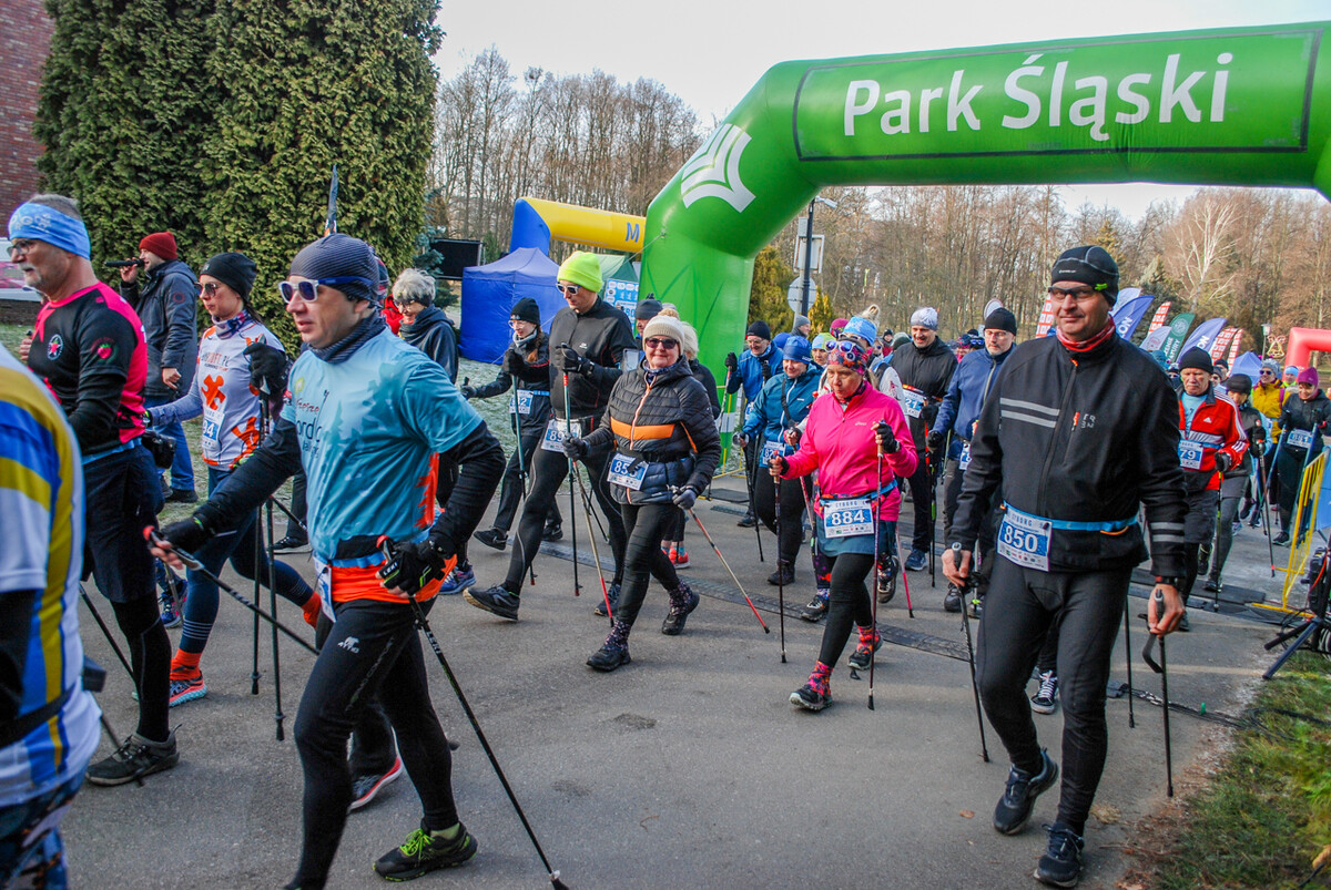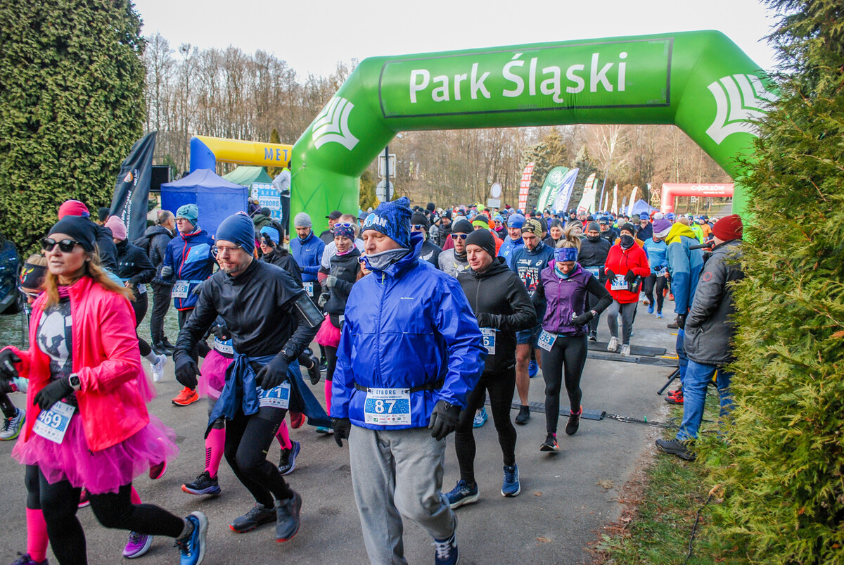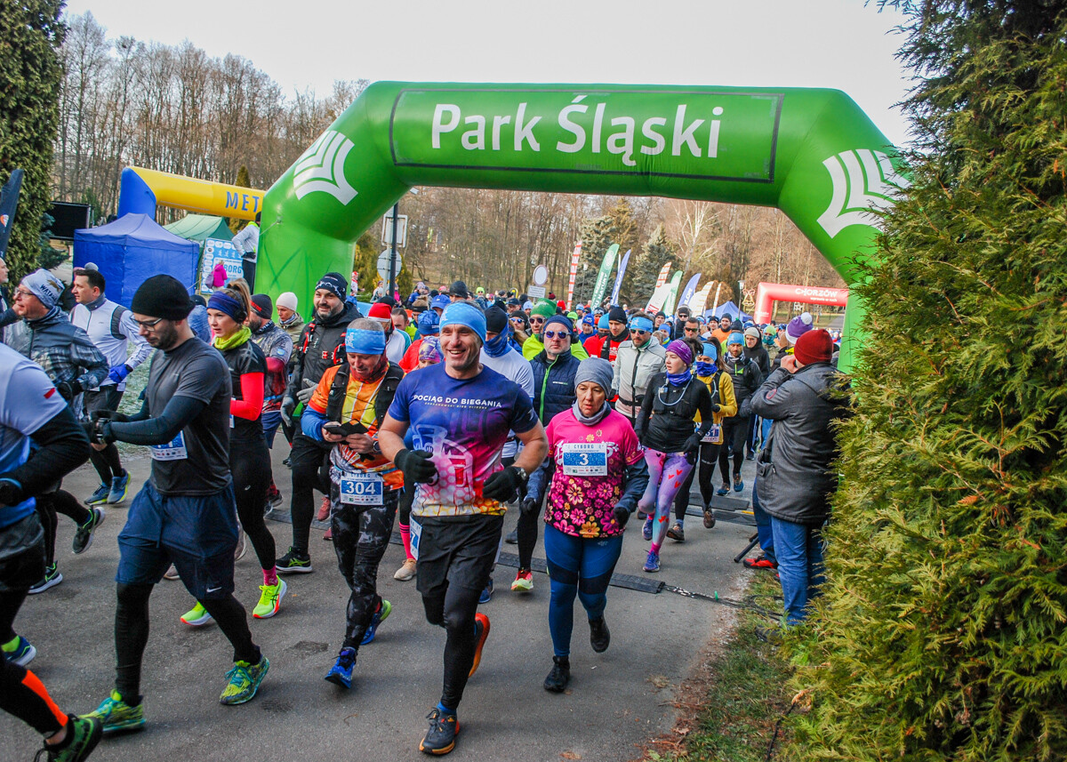 Kolorowy tłum przebiegł dziś alejkami Parku Śląskiego, 900 truchtaczy i zawodników nordic walking równo o godzinie 12 ruszyło, by zmierzyć się z zimową trasą. Pogoda dopisała, zza chmur wyszło też słońce i większość uczestników biegła z uśmiechem na twarzy. Choć część trasy była nieco oblodzona i dość mocno wiało, obyło się bez wypadków.