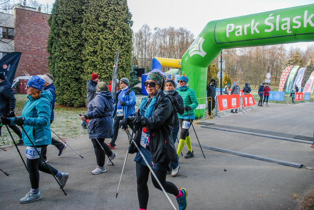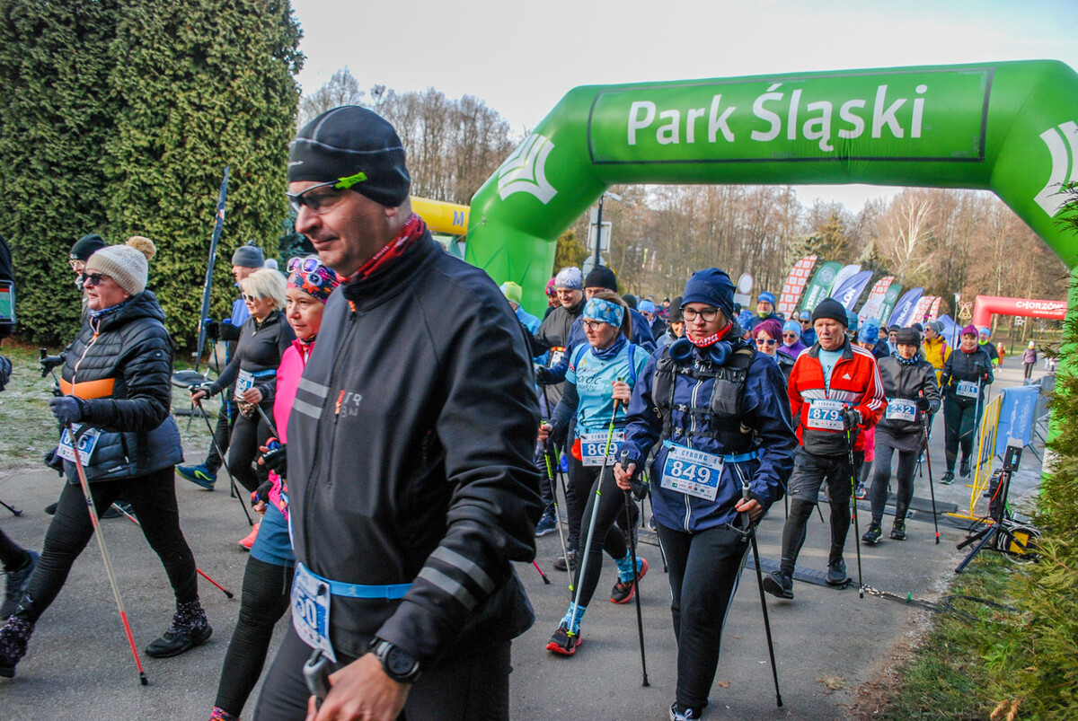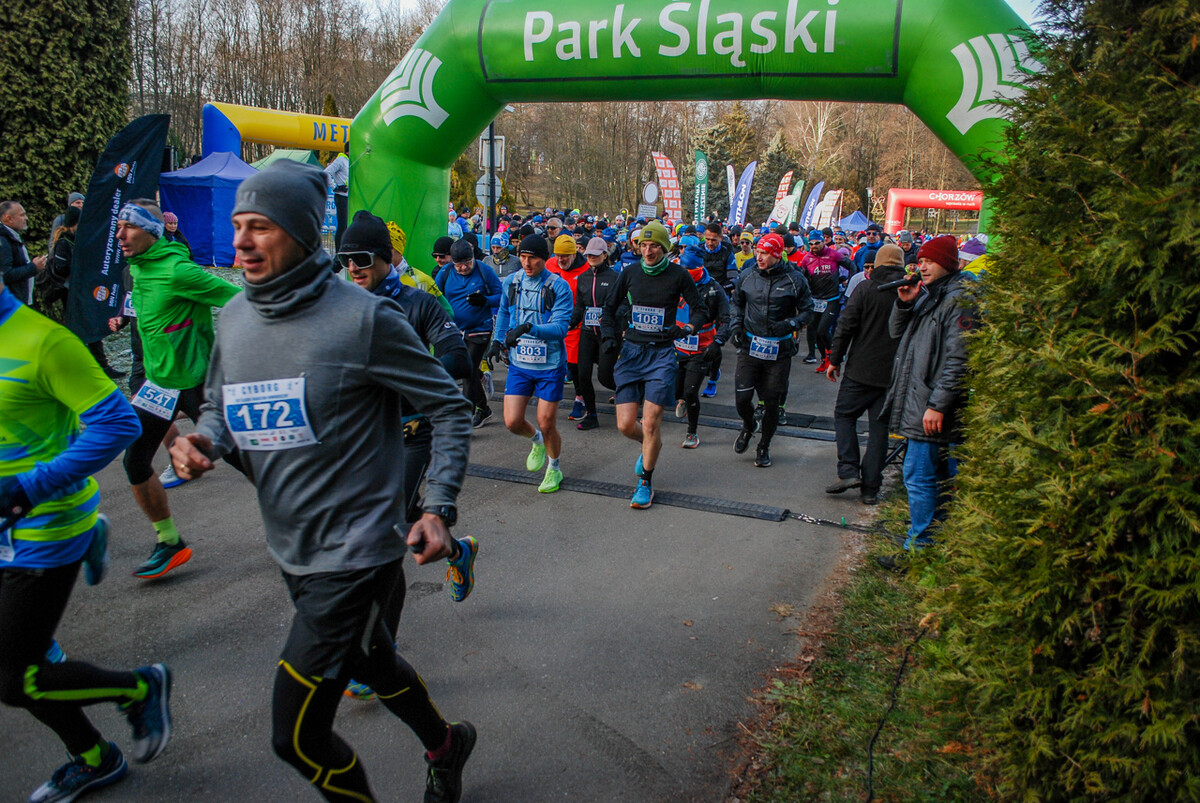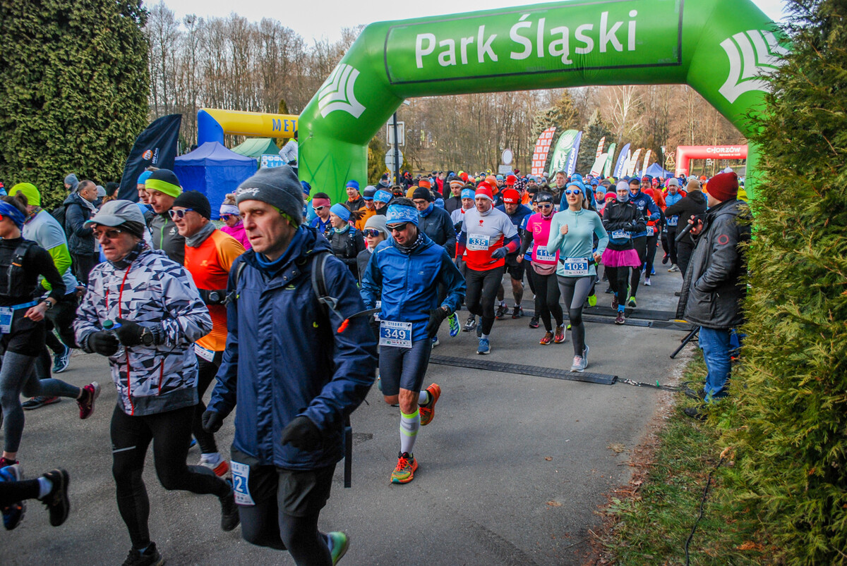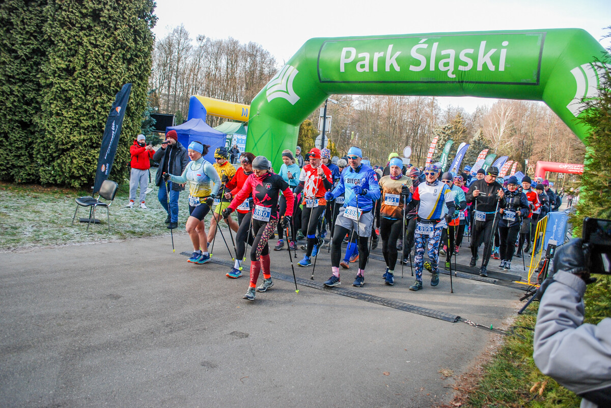 Kolorowy tłum przebiegł dziś alejkami Parku Śląskiego, 900 truchtaczy i zawodników nordic walking równo o godzinie 12 ruszyło, by zmierzyć się z zimową trasą. Pogoda dopisała, zza chmur wyszło też słońce i większość uczestników biegła z uśmiechem na twarzy. Choć część trasy była nieco oblodzona i dość mocno wiało, obyło się bez wypadków.