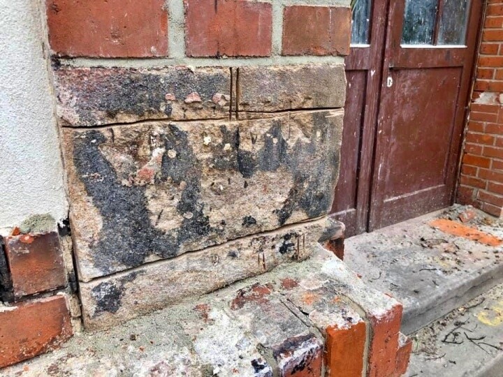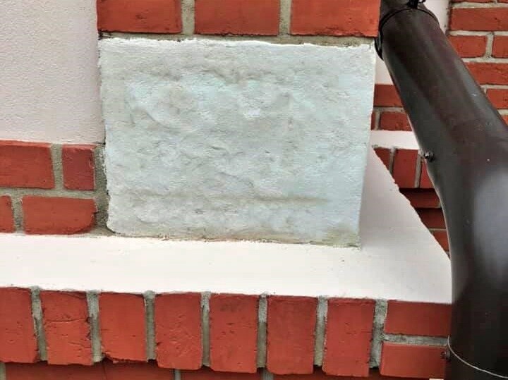 Przekonanie konserwatora zabytków okazało się błędne. Podczas kolejnej wizyty zauważył, że pamiątkowy kamień narożny został nacięty szlifierką kątową, bo ktoś chciał go upodobnić do cegły, która jest na reszcie elewacji.