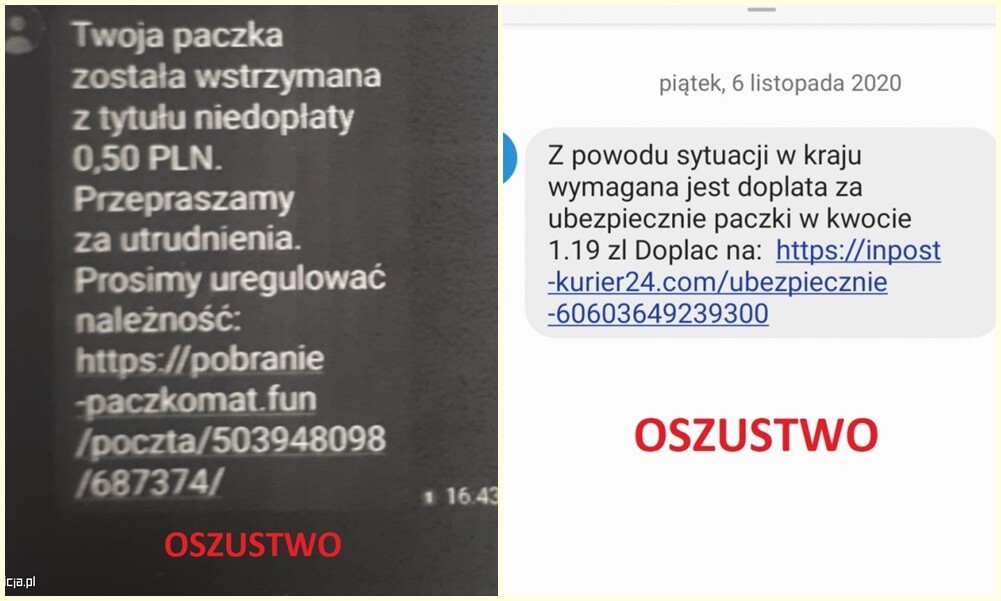 Kobieta otrzymała wiadomość, z której wynikało, że jej przesyłka została wstrzymana z powodu niedopłaty 50 groszy. Po wejściu w link oraz próbie zalogowania się oszust uzyskał dostęp do jej konta bankowego, z którego następnie wypłacił pieniądze. Powiadomieni o tym zdarzeniu policjanci prowadzą działania mające na celu schwytanie oszusta.