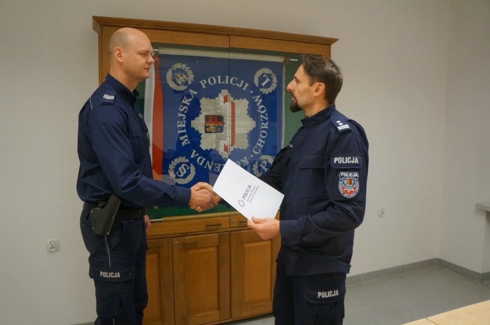 Wczoraj Komendant Miejski Policji w Chorzowie mł. insp. Robert Łuszcz podziękował sierż. sztab. Rafałowi Kroteckiemu za godną naśladowania postawę.