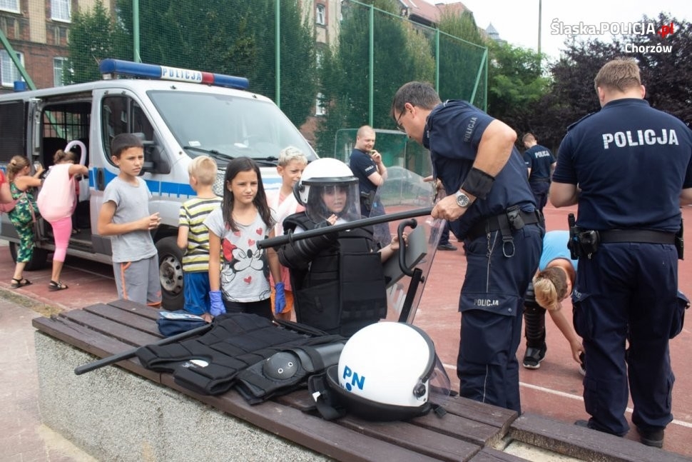 Wtorkowe słoneczne popołudnie sprzyjało przybyciu gości na festyn zorganizowany przez dzielnicowego z chorzowskiej jedynki, w ramach programu „Dzielnicowy Bliżej Nas”. Głównym założeniem programu jest ułatwienie kontaktu dzielnicowego z mieszkańcami danej dzielnicy oraz budowania zaufania pomiędzy służbami a obywatelami. Młodszy aspirant Michał Wilmański, jako policjant pierwszego kontaktu korzystając z pomocy Stowarzyszenia „Dom Aniołów Stróżów” zorganizował szeroko zakrojony event profilaktyczny dla wszystkich mieszkańców Chorzowa, w szczególności dla mieszkańców dzielnicy „Biadacz”. W trakcie imprezy, chorzowscy policjanci nie tylko czuwali nad bezpieczeństwem, ale również udzielali fachowych rad. Była to idealna okazja dla najmłodszych, aby mundurowi wyjaśnili im jak dbać o bezpieczeństwo w czasie kończącego się okresu wakacyjnego, jak powinni się zachowywać podczas wypoczynku nad wodą oraz jakie są podstawowe zasady pierwszej pomocy w okresie trwającego zagrożenia epidemicznego. Dzielnicowi zwracali również uwagę na konieczność poważnego traktowania i respektowania obowiązujących obostrzeń wynikających z pandemii wirusa COVID-19. Szczególnie dużym zainteresowaniem najmłodszych uczestników festynu cieszyły się pojazdy policyjne, wyposażenie specjalistyczne oraz pokaz prawidłowego udzielania pierwszej pomocy lekarskiej. Zaproszeni policjanci dzielnicowi z sąsiednich rejonów, mieli idealną okazję do nawiązania kontaktu z mieszkańcami Chorzowa, jak również, promowali nowe narzędzia internetowe takie jak Krajowa Mapa Zagrożeń Bezpieczeństwa oraz aplikacja Moja Komenda. Do tak ważnych działań profilaktycznych dla mieszkańców włączyła się chorzowska Straż Miejska, Miejski Dom Kultury „Batory”, przedstawiciele Przedsiębiorstwa Gospodarki Mieszkaniowej oraz Wydziału Promocji Urzędu Miejskiego w Chorzowie. Dodatkowo uczestnicy festynu mogli zobaczyć sprzęt wykorzystywany przez policjantów z drogówki oraz przypomnieć sobie prawidłowe zasady ruchu drogowego. Dla najmłodszych przygotowano liczne konkursy, gry i zabawy z nagrodami. Najlepszą jednak nagrodą dla wszystkich dorosłych uczestników i organizatorów festynu były uśmiechnięte twarze najmłodszych mieszkańców naszego miasta.