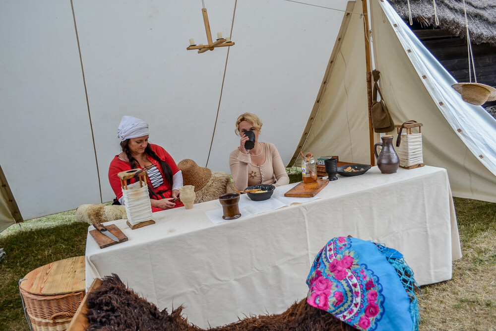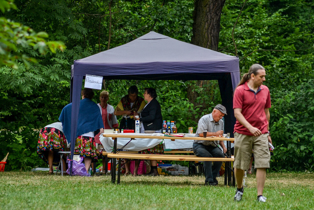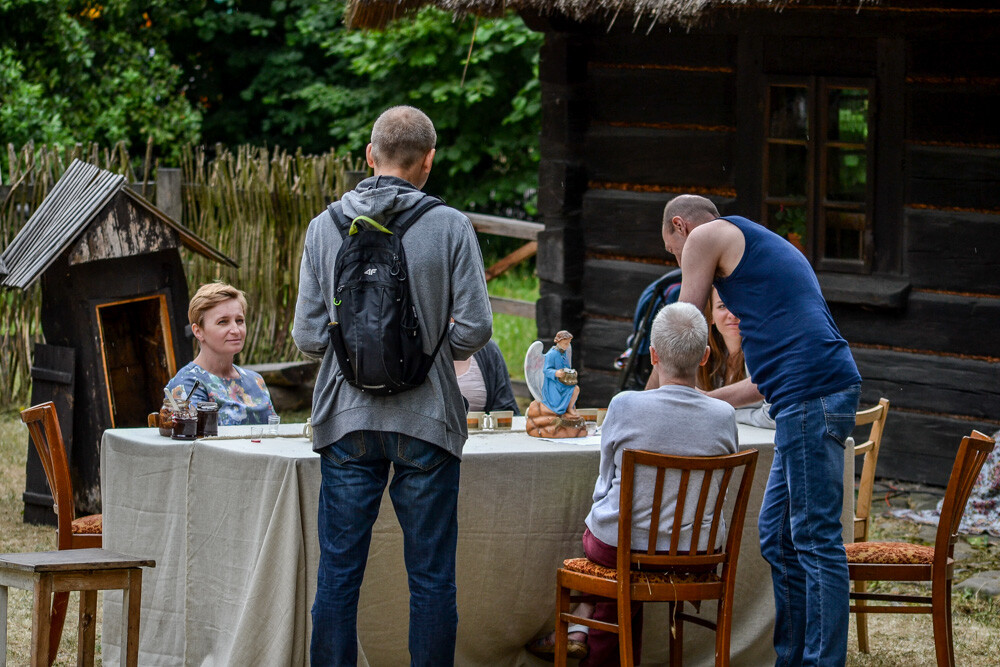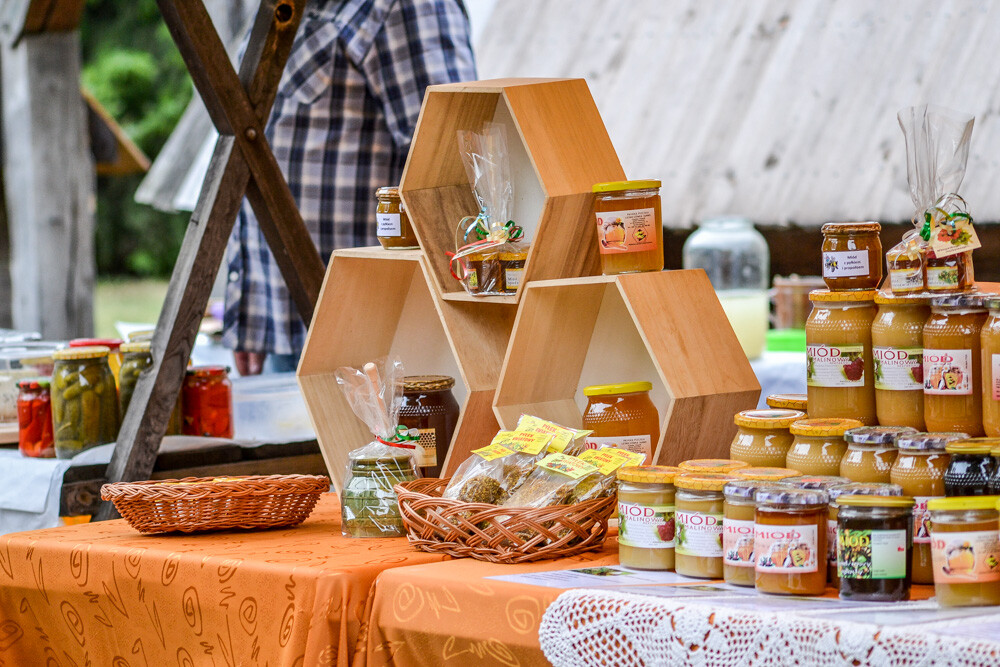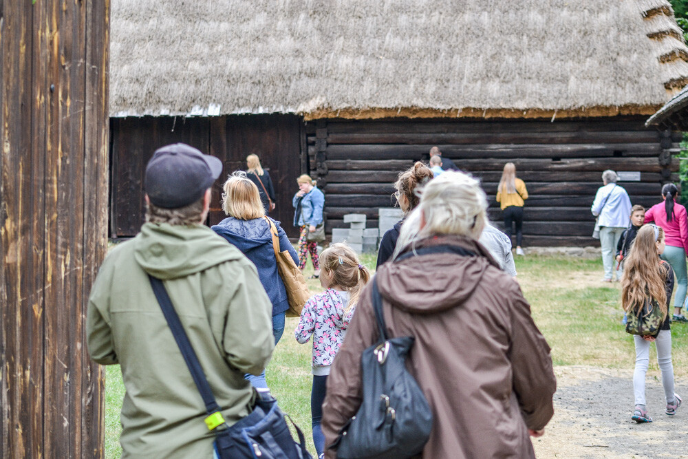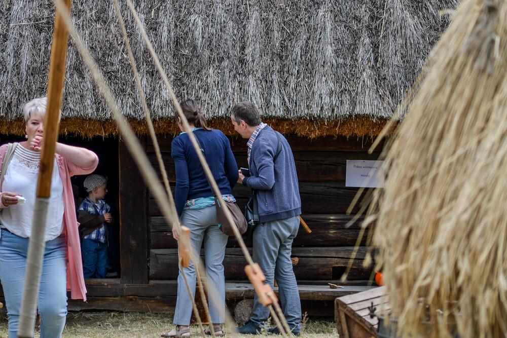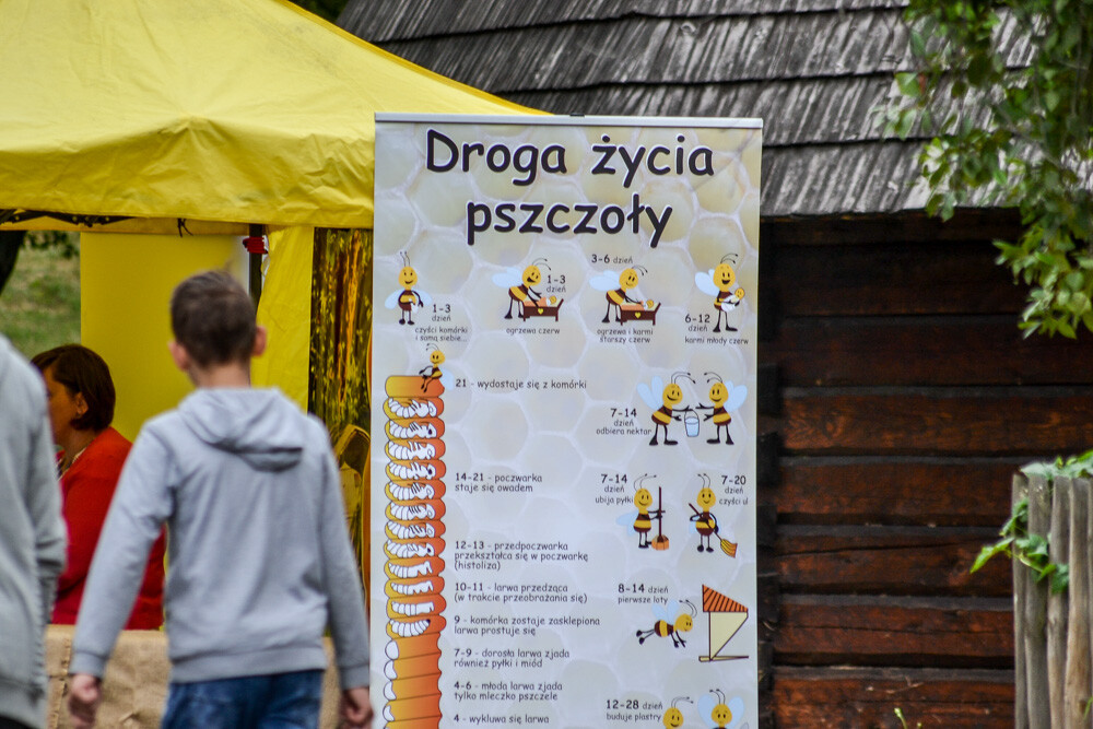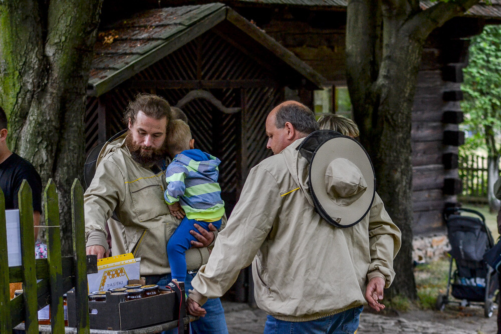 Od rana nad naszym regionem gromadziły się ciężkie chmury, z których kilka razy popadało, a nieprzyjemną aurę wspomagał zrywający się co chwilę wiatr. Mimo iż temperatura była o wiele niższa, niż w ostatnich dniach, do skansenu zawitało sporo osób. Chętnie korzystali z wolnej niedzieli próbując miodów, oglądając rękodzieło, pokaz wirowania miodu, usuwania gniazda os, czy zaglądając do miasteczka namiotowego Koła Gospodyń Wiejskich Niwczanki.