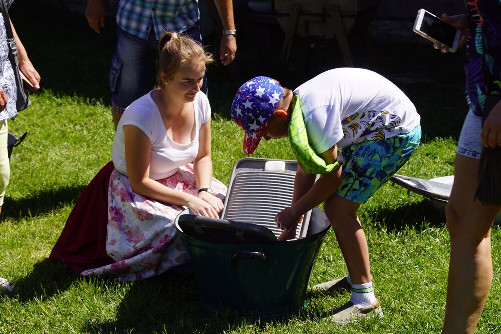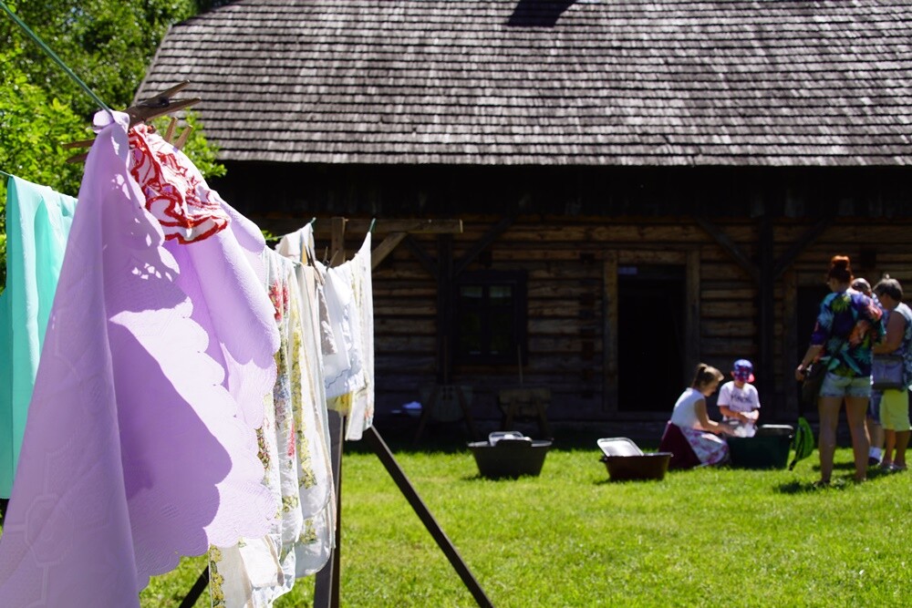 Oprócz tego uczestnicy mogli wziąć udział w „wielkim praniu” na tarach, spróbować swoich sił w hafcie czy farbowaniu tkanin, a także podejrzeć pracę młynarza i zobaczyć jak działa gręplarka. Na najmłodszych gości – w zagrodzie z Panewnik – czekały warsztaty z ciesielskie, a w chałupie ze Strzemieszyc warsztaty bibułkarskie.