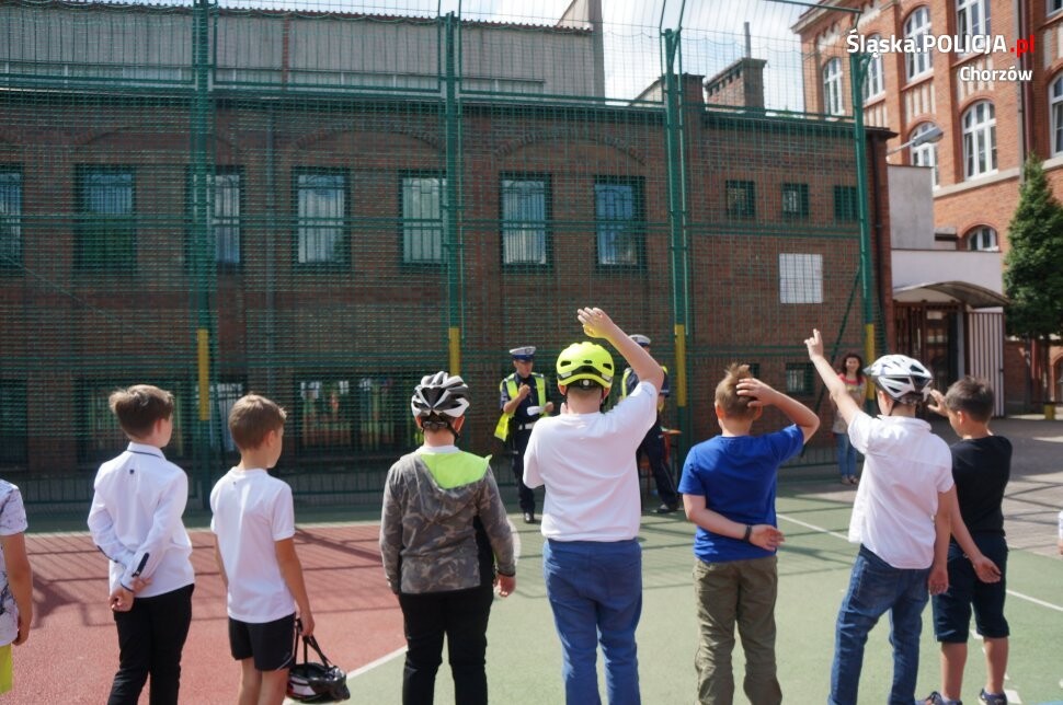 Funkcjonariusze chorzowskiej drogówki przeprowadził egzamin praktyczny na kartęrowerową dla uczniów Szkoły Podstawowej nr 17 w Chorzowie. Sprawdzian umiejętności poprzedzony był prelekcją na temat praw i obowiązków niechronionych uczestników ruchu drogowego oraz bezpiecznego korzystania z dróg przez kierujących jednośladami. Policjanci czuwali nad prawidłowym przebiegiem egzaminu oraz oceniali umiejętności praktyczne uczniów. Przed przystąpieniem do testu z jazdy, kandydaci musieli uzyskać na to zgodę swych rodziców lub opiekunów oraz zdać sprawdzian z teorii. Teraz po zaliczeniu praktyki, z niecierpliwością czekają na wydanie swoich pierwszych uprawnień do kierowania rowerem.