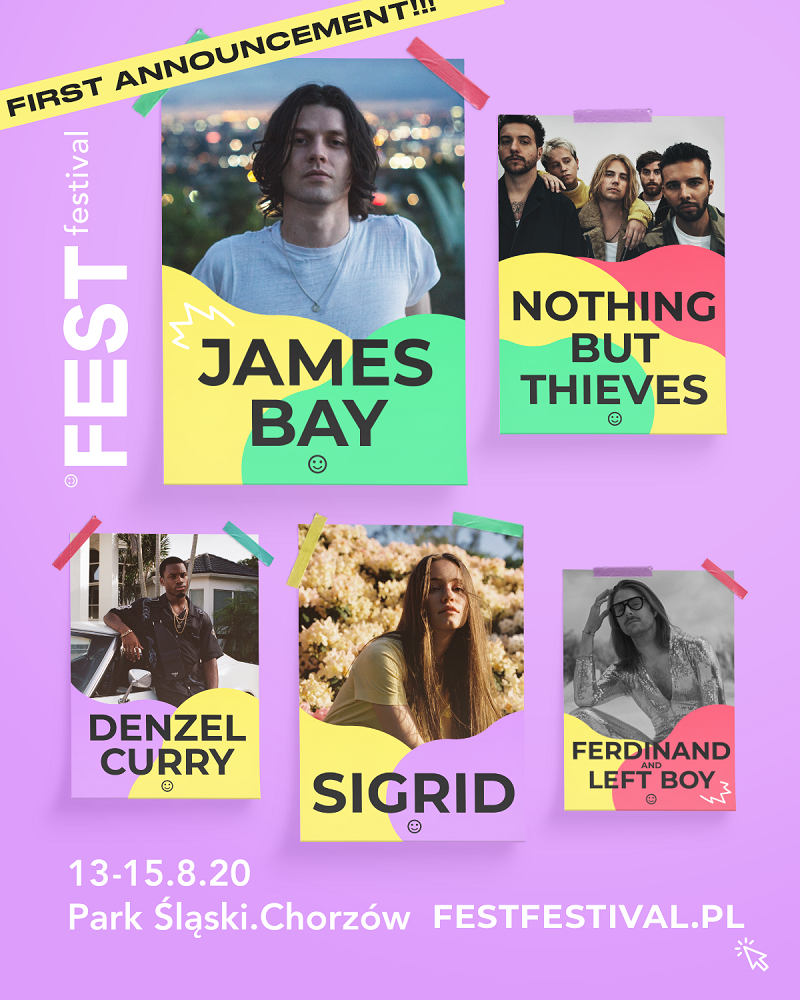 Pierwszym headlinerem jest James Bay, a poza nim zobaczymy koncerty takich artystów jak: Nothing But Thieves, Sigrid, Denzel Curry oraz Ferdinand and Left Boy. Warto przypomnieć, że FEST jeszcze we wrześniu ogłosił wydłużenie drugiej edycji wydarzenia do 3 dni!