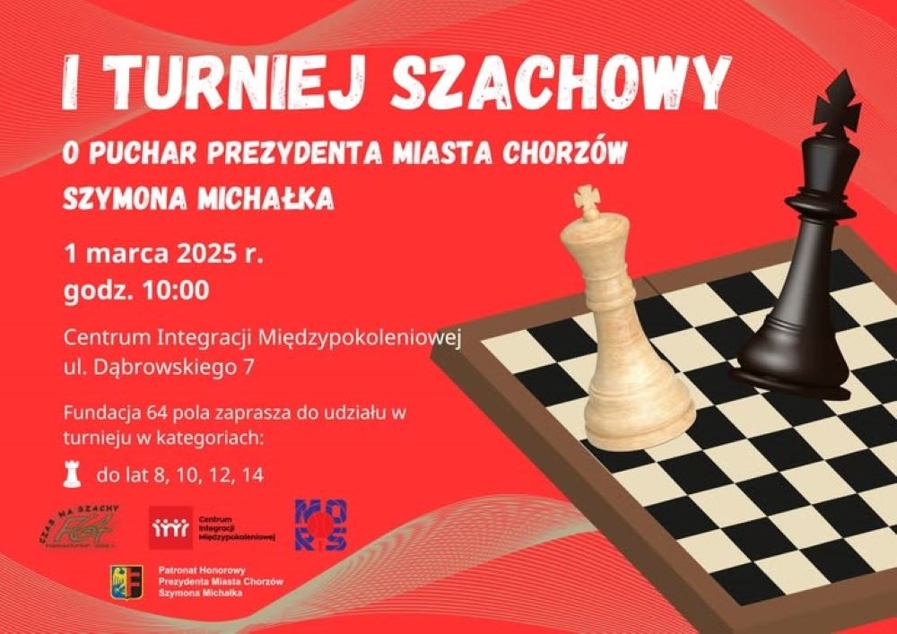 Pasjonaci szachów będą mieli okazję wziąć udział w I Turnieju o Puchar Prezydenta Miasta Chorzów w Szachach, a to wszystko 1 marca o godzinie 10.00!