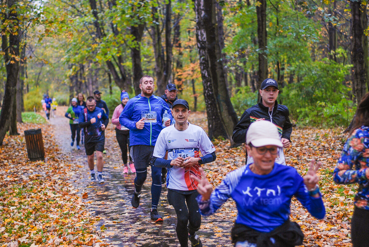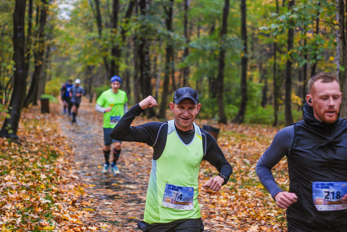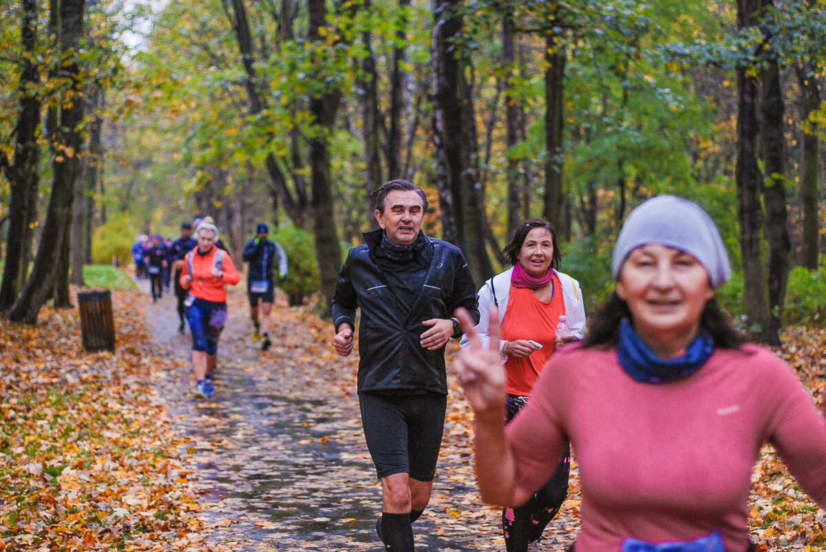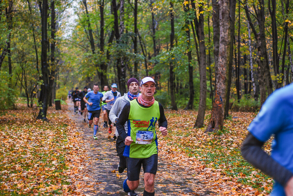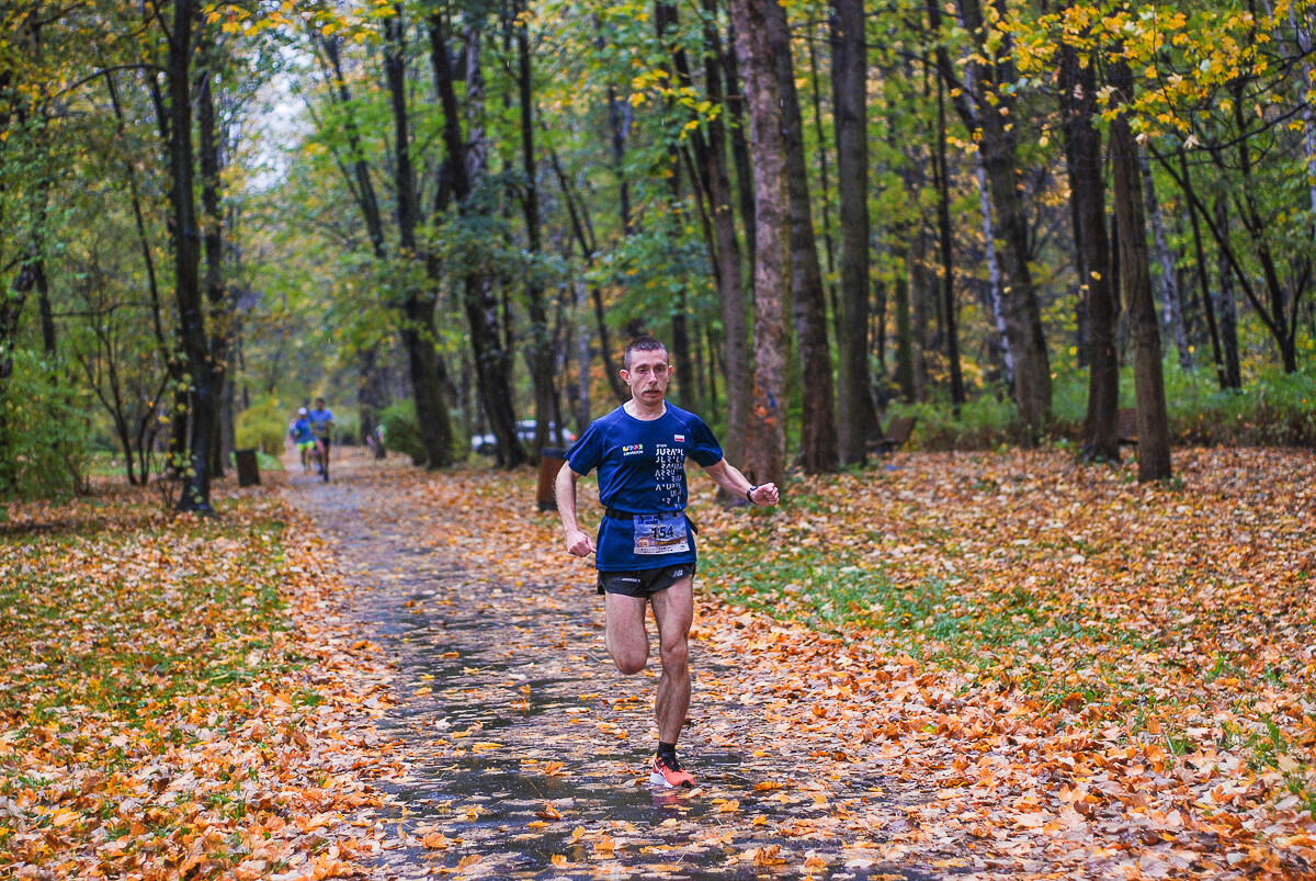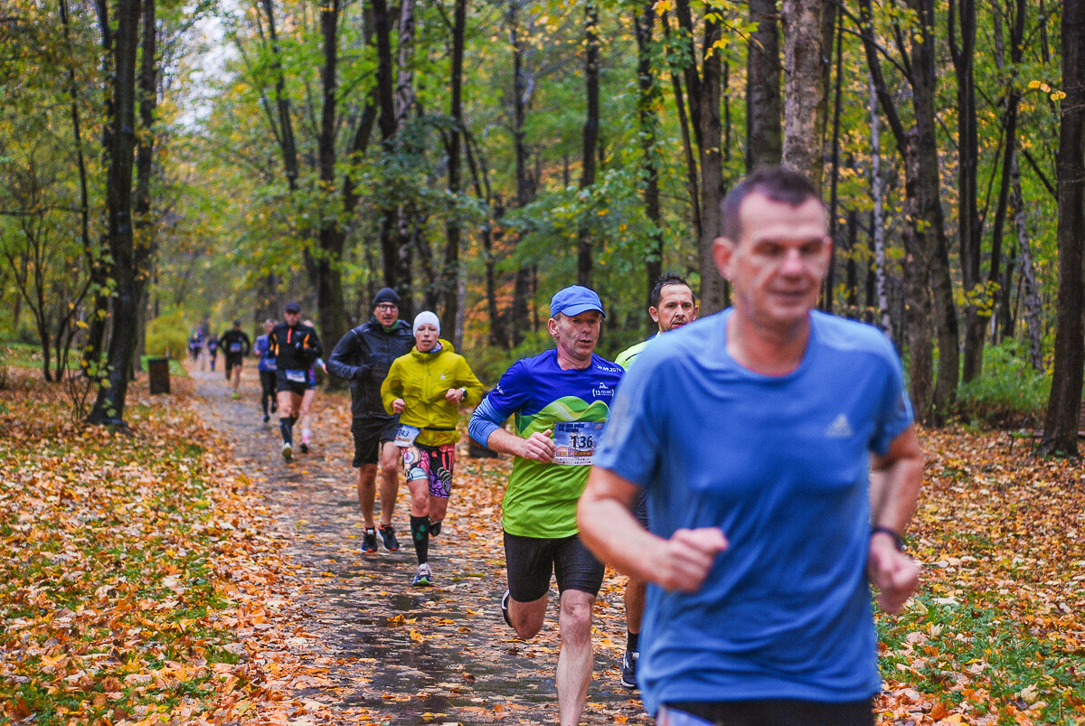Najlepsi pokonali trasę w dużo mniej niż godzinę. Na terenie Parku, w okolicy Żyrafy, gdzie czekaliśmy z naszym aparatem, byli już po około kwadransie. Chwilę po nich, pojawiła się główna grupa biegaczy.
