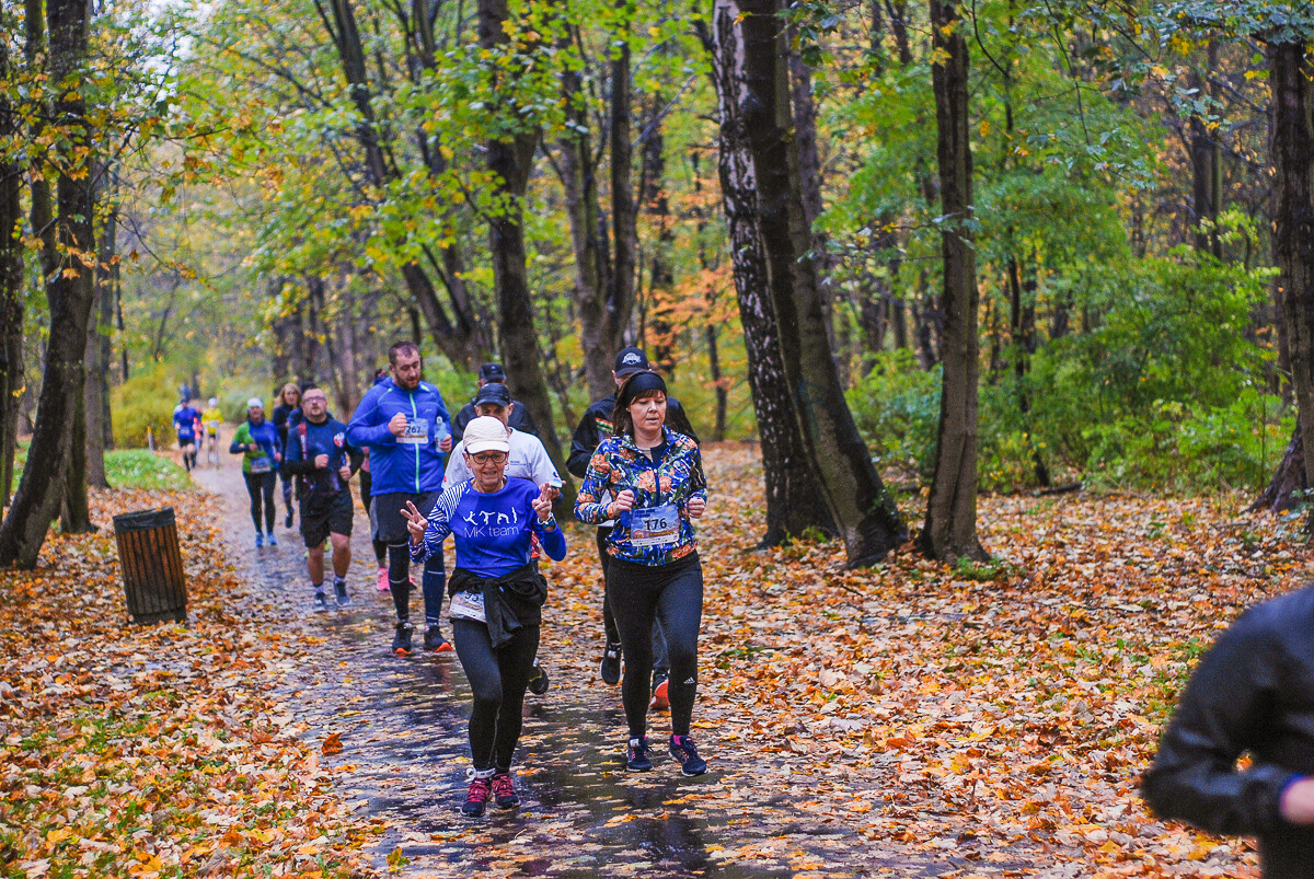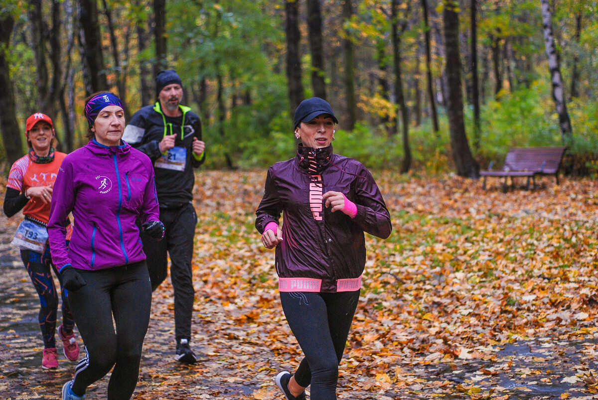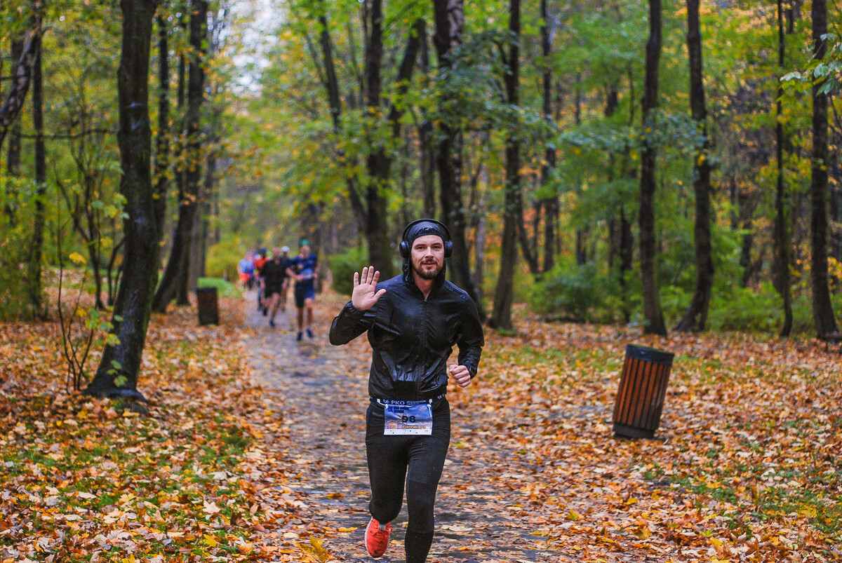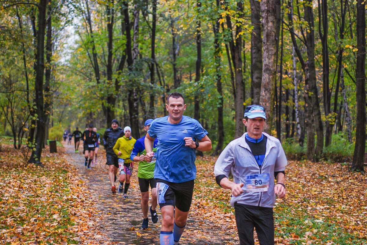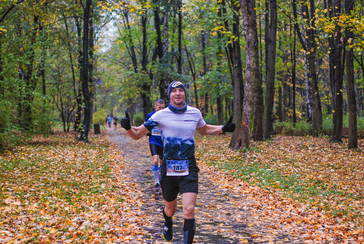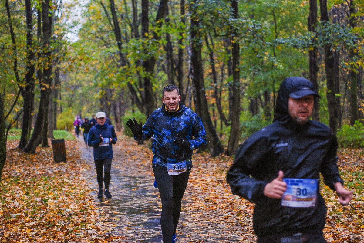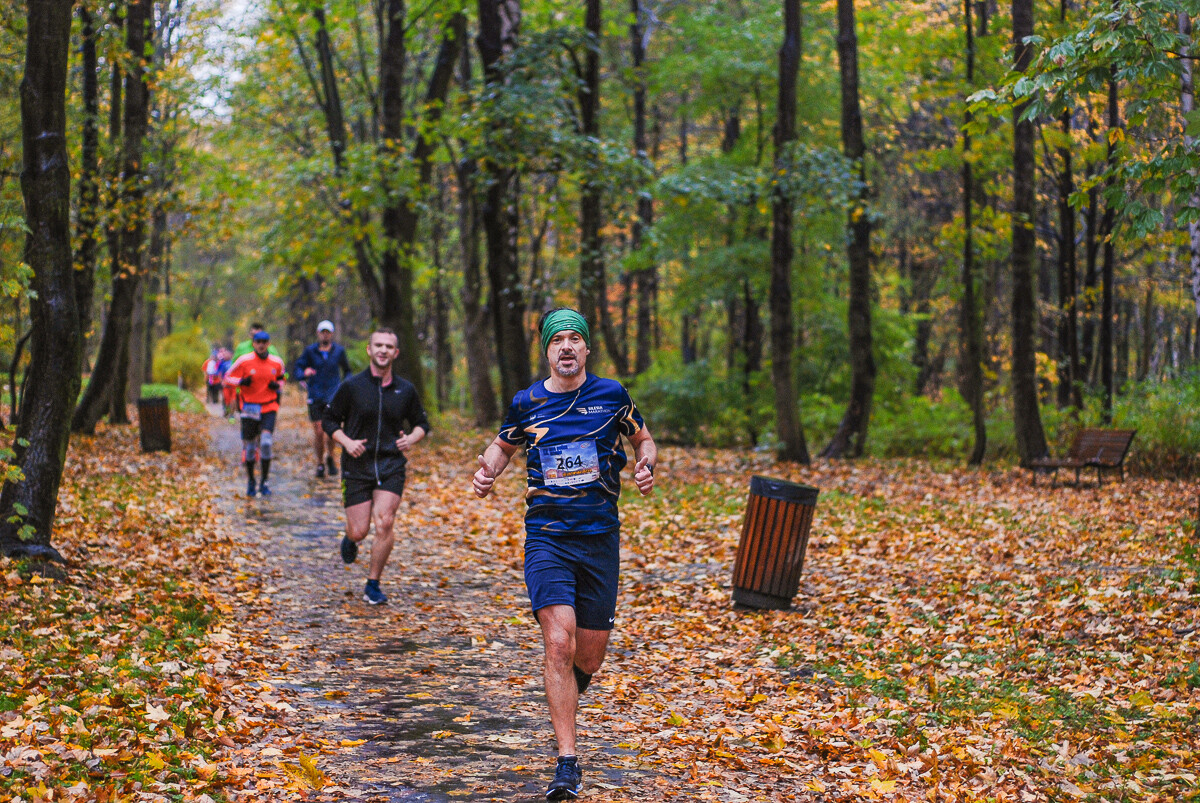 Najlepsi pokonali trasę w dużo mniej niż godzinę. Na terenie Parku, w okolicy Żyrafy, gdzie czekaliśmy z naszym aparatem, byli już po około kwadransie. Chwilę po nich, pojawiła się główna grupa biegaczy.