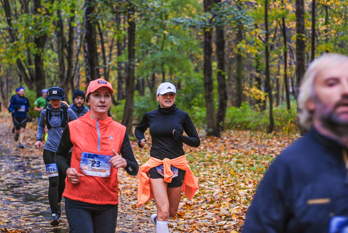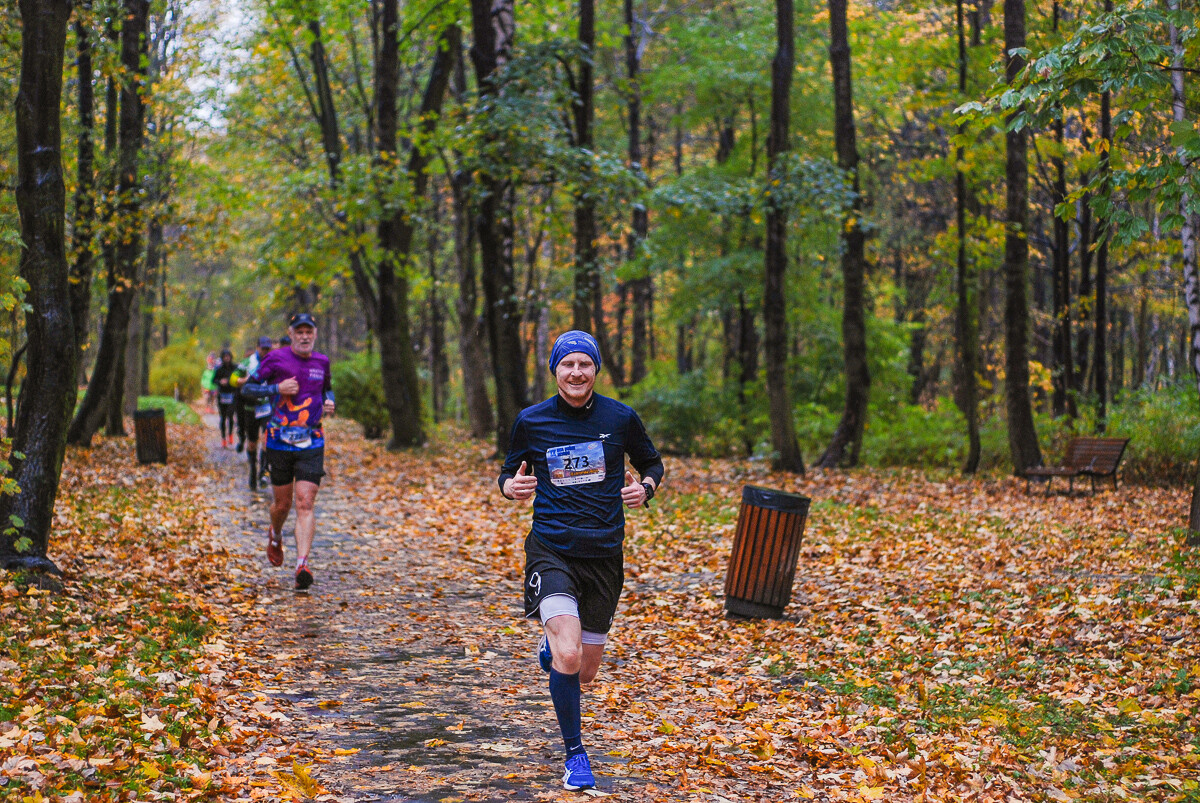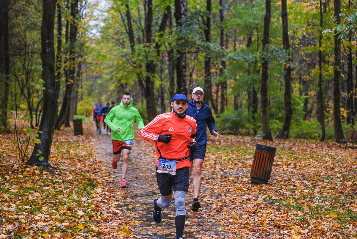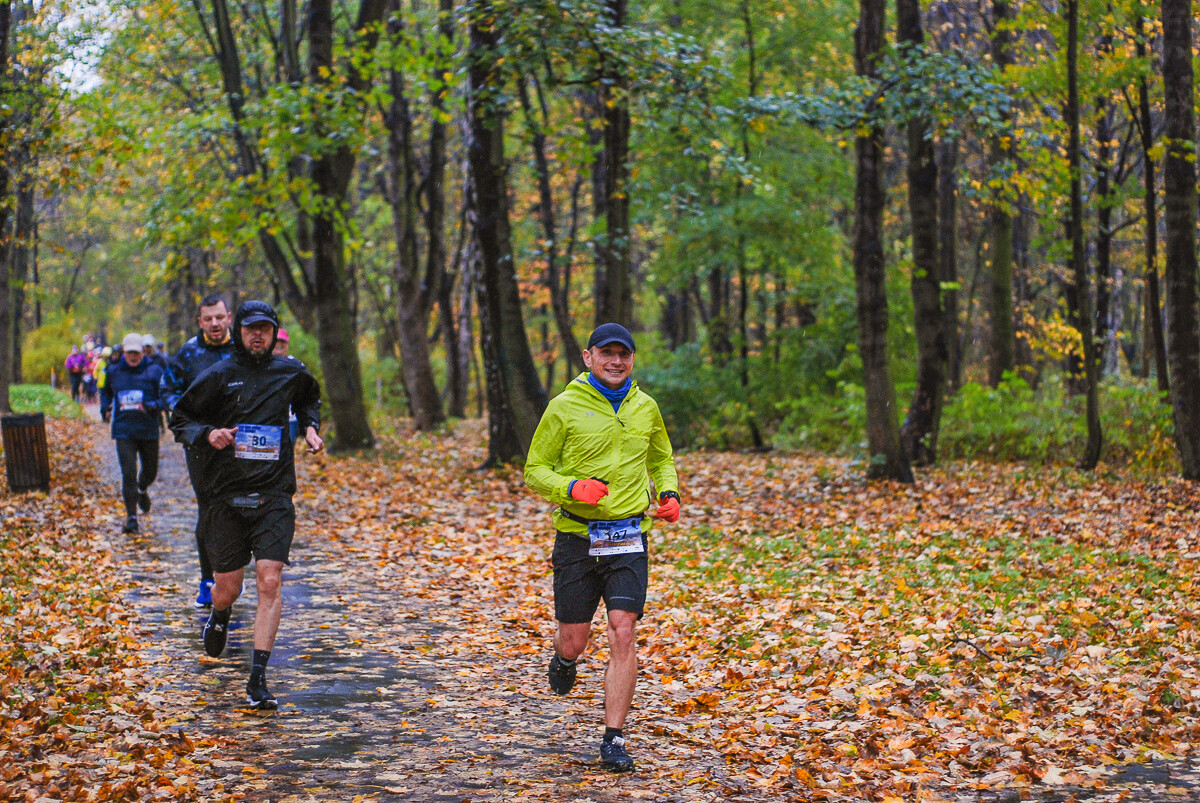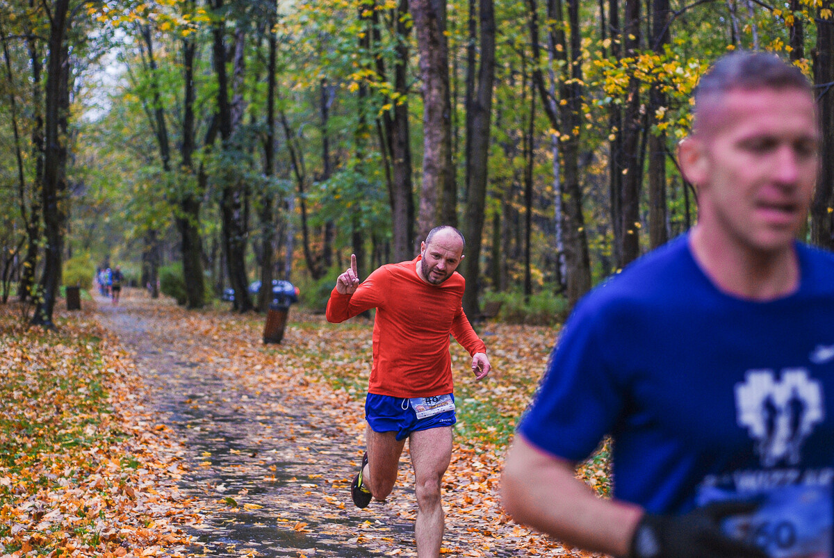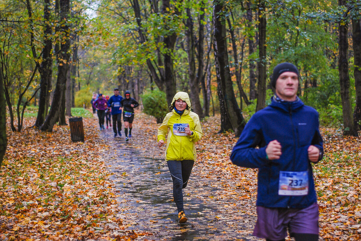 Najlepsi pokonali trasę w dużo mniej niż godzinę. Na terenie Parku, w okolicy Żyrafy, gdzie czekaliśmy z naszym aparatem, byli już po około kwadransie. Chwilę po nich, pojawiła się główna grupa biegaczy.