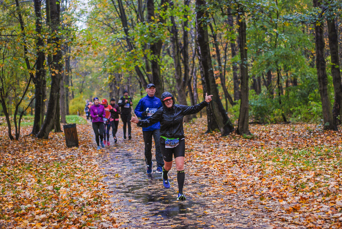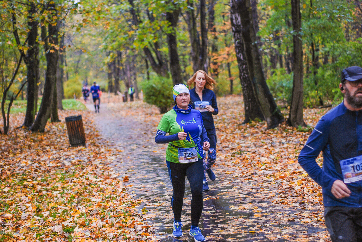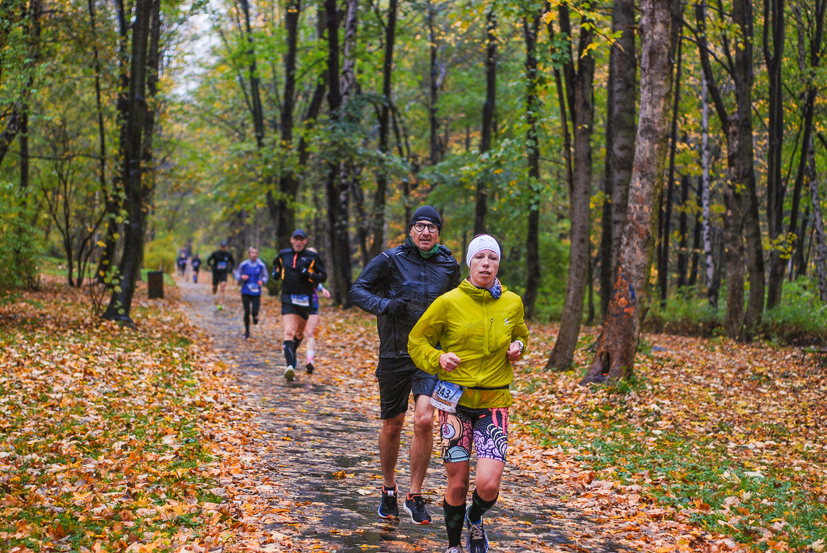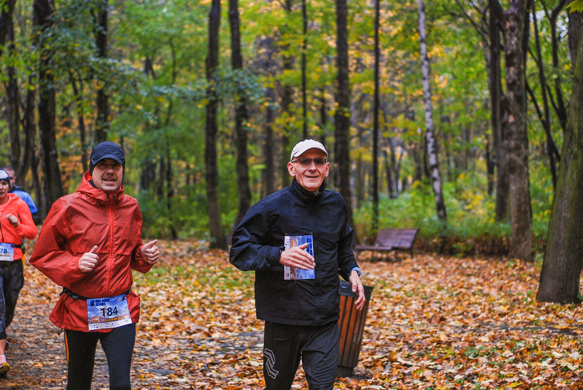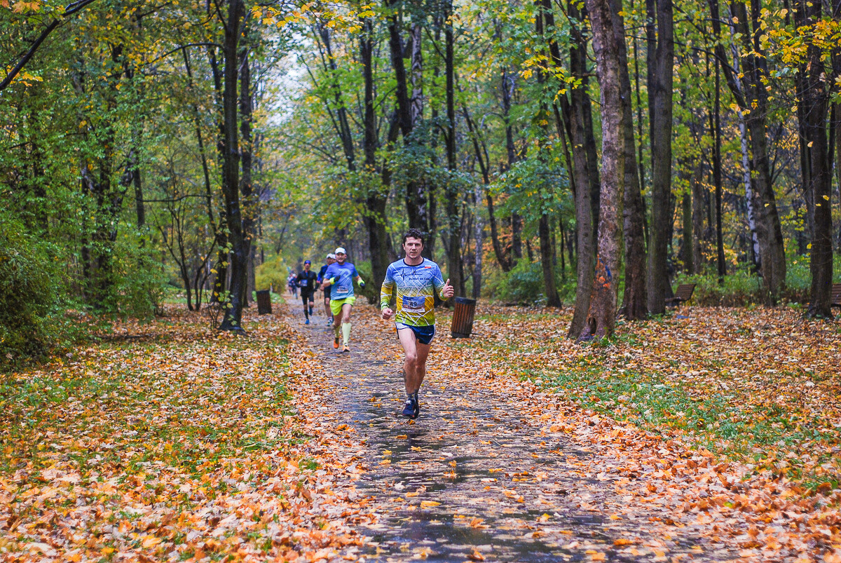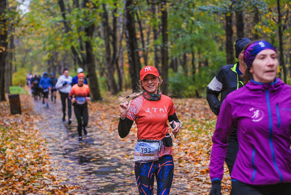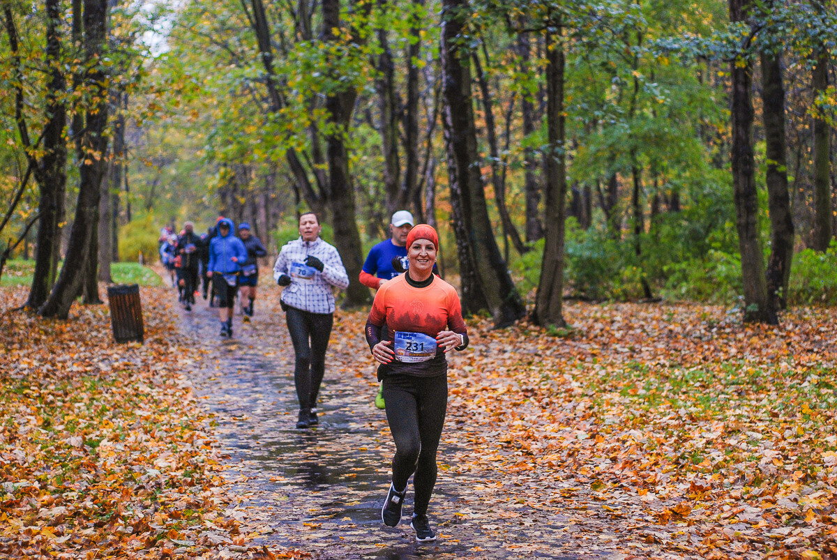 Najlepsi pokonali trasę w dużo mniej niż godzinę. Na terenie Parku, w okolicy Żyrafy, gdzie czekaliśmy z naszym aparatem, byli już po około kwadransie. Chwilę po nich, pojawiła się główna grupa biegaczy.