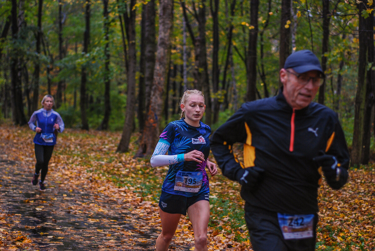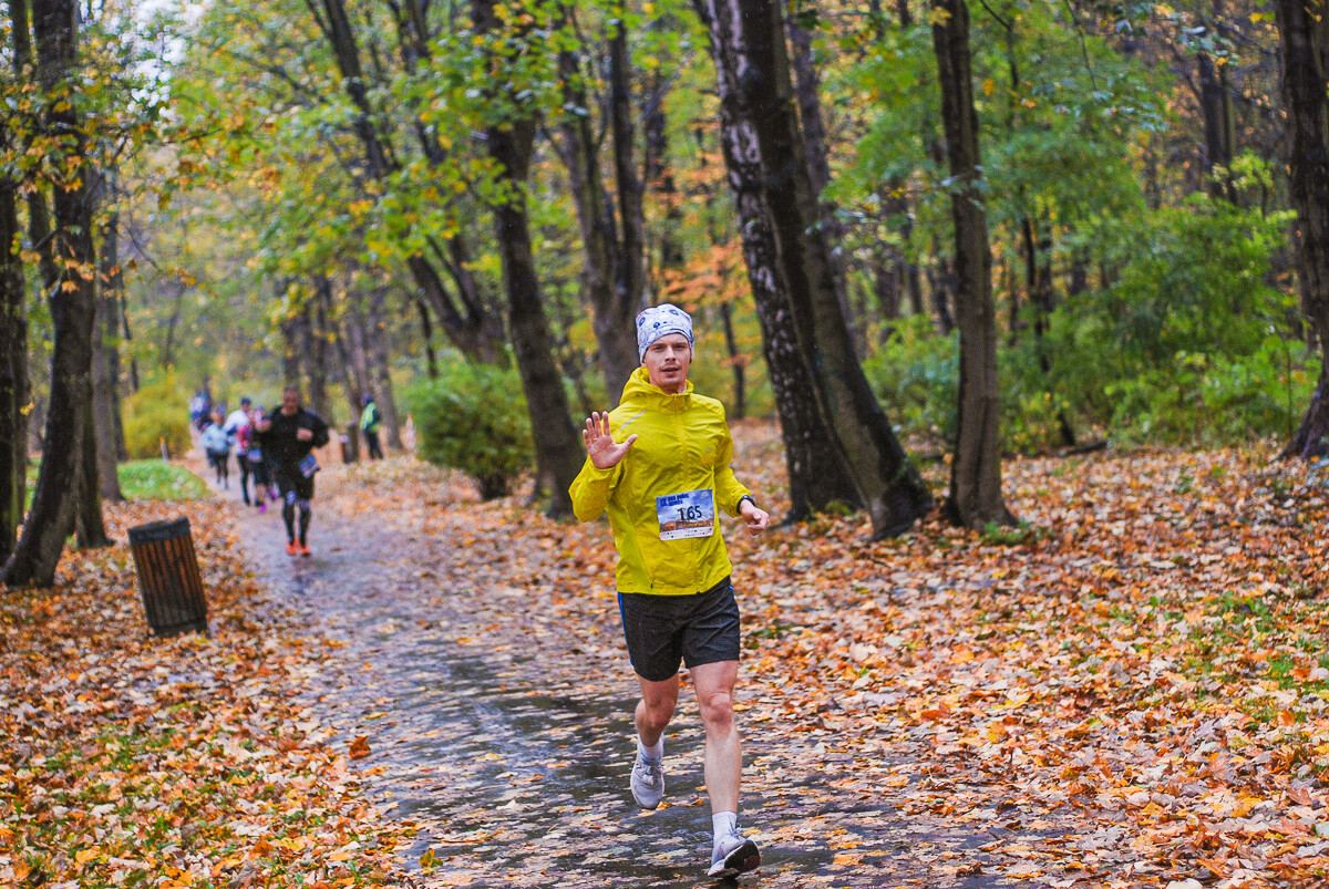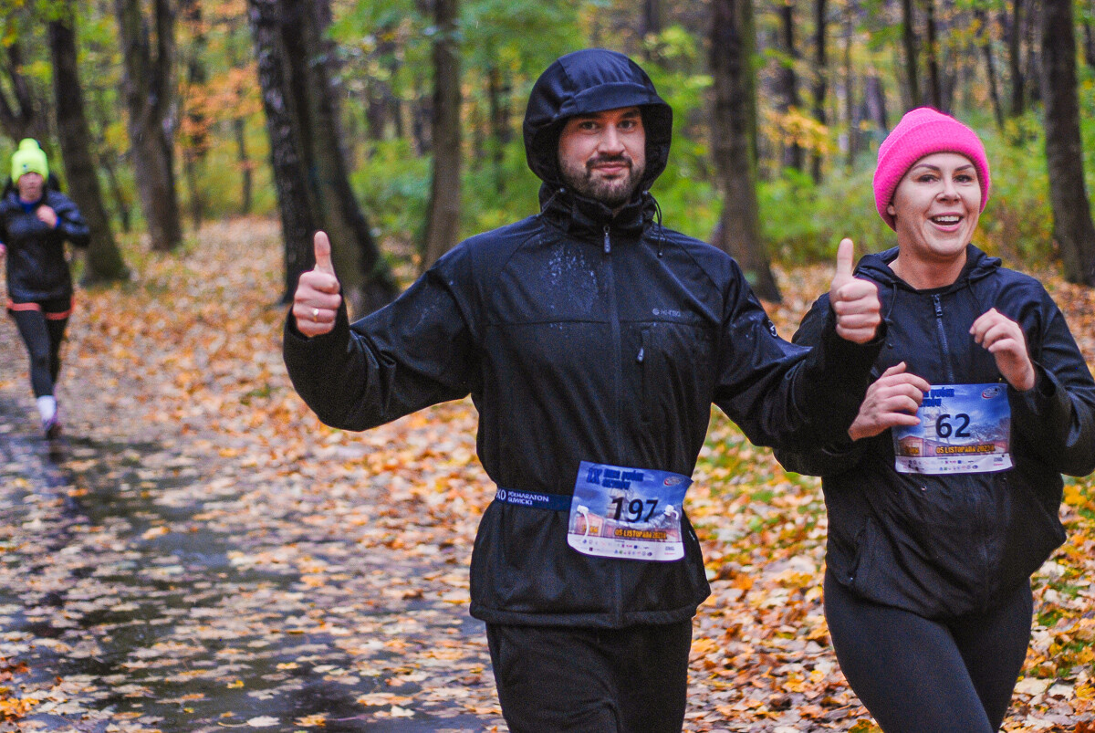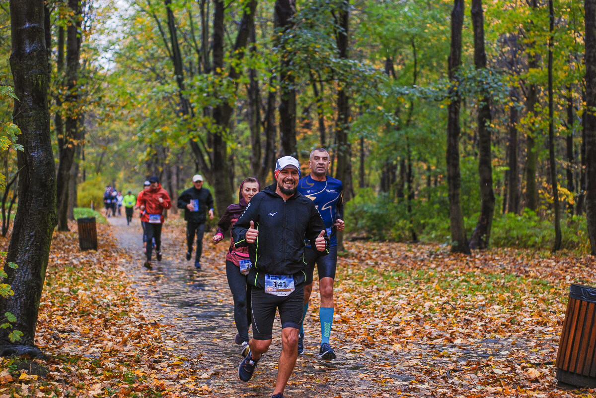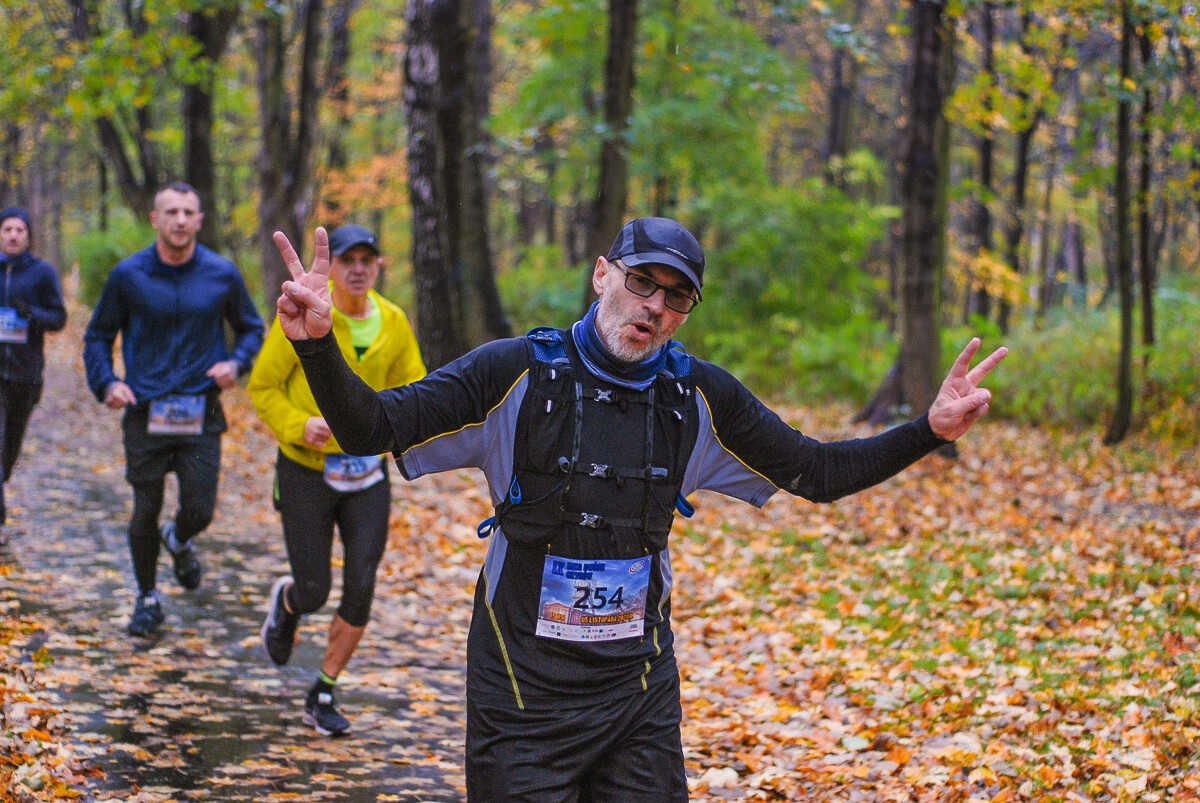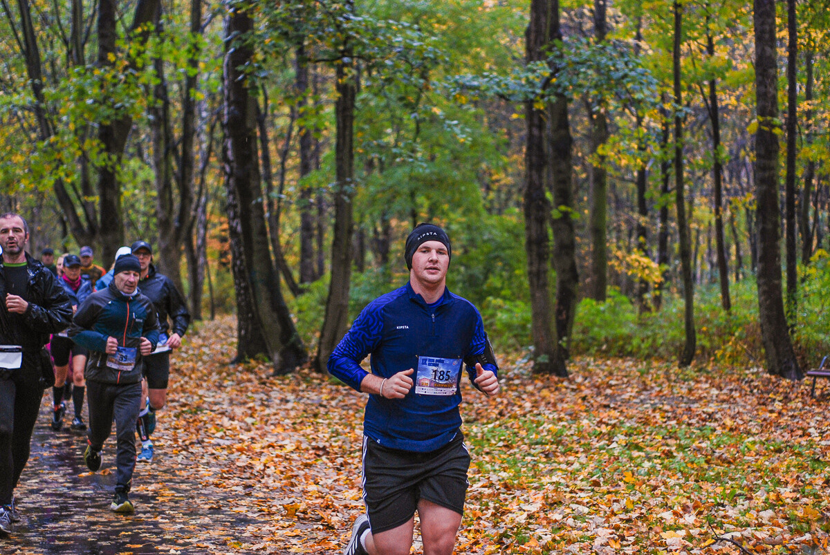 Najlepsi pokonali trasę w dużo mniej niż godzinę. Na terenie Parku, w okolicy Żyrafy, gdzie czekaliśmy z naszym aparatem, byli już po około kwadransie. Chwilę po nich, pojawiła się główna grupa biegaczy.