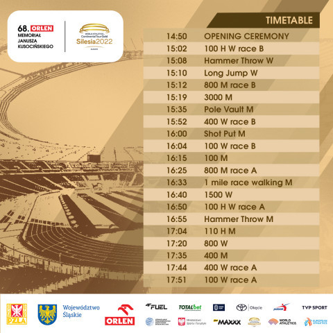 68. ORLEN Memoriał Janusza Kusocińskiego jest jednym z dwunastu światowych mityngów w kategorii złotej World Athletics Continental Tour. Impreza na Stadionie Śląskim rozpocznie się 5 czerwca o godz. 14.45. Wstęp dla kibiców jest wolny, a organizatorzy z okazji Dnia Dziecka przygotują dla najmłodszych piknik pełen atrakcji.