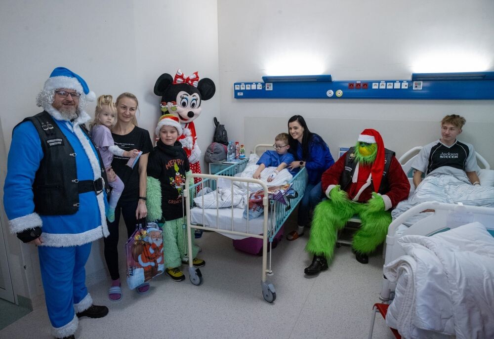 Ciężko słowami oddać to, co wydarzyło się w minioną sobotę w Zespole Szpitali Miejskich. Pod budynek podjechali MotoMikołaje – część z nich na quadach i motocyklach, część w zmotoryzowanych saniach. Towarzyszyli im zawodnicy Ruchu Chorzów: kapitan Tomasz Foszmańczyk, obrońca Maciej Sadlok i bramkarz Jakub Bielecki. Nie zabrakło także postaci z bajek, takich jak Grinch, Myszka Minnie czy Królik Bugs. Wesołą ekipę zasilili również członkowie grupy poszukiwawczo-ratowniczej z psami, które chętnie bawiły się z dziećmi.