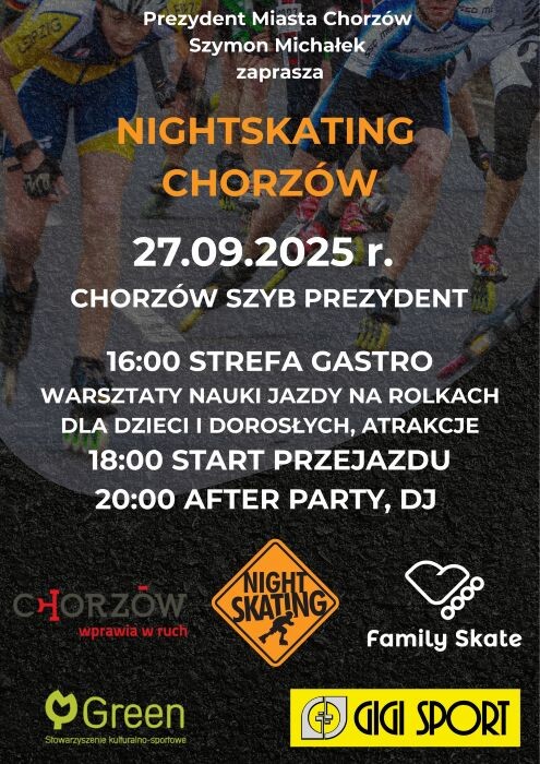 Chorzów znów stanie się rolkową stolicą regionu! Już 27 września 2025 r. odbędzie się długo wyczekiwany Nightskating Chorzów – wyjątkowe wydarzenie sportowo-kulturalne, które od lat przyciąga miłośników jazdy na rolkach z całego województwa śląskiego. Startujemy o godzinie 18:00 spod Szybu Prezydent!