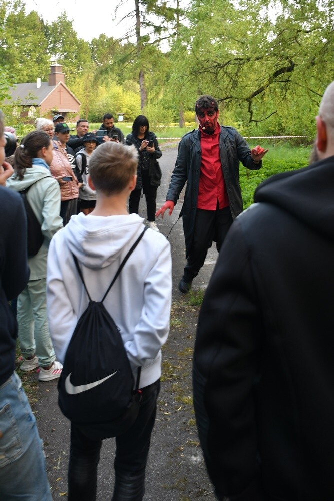 Zwiedzający, którzy odwiedzili tej nocy skansen przeszli w grupach przez jego teren wyznaczoną trasą wraz z przewodnikiem. Na gości skansenu czyhały strachy i demony, w które wcielili się aktorzy teatru Lufcik na korbkę.