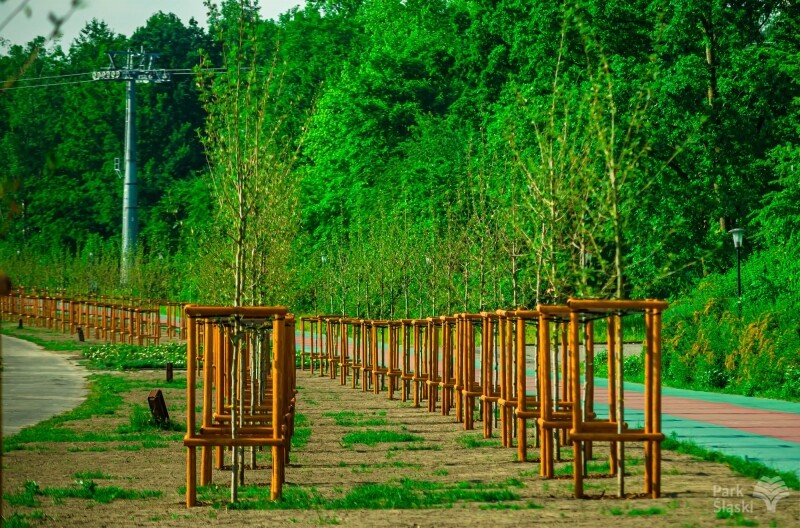 Na promenadzie gen. J. Ziętka w Parku Śląskim, skończono nasadzenia nowych, młodych drzew. Na odcinku od al. Harcerskiej do Wiązowej nasadzono aż 100 topoli berlińskich.