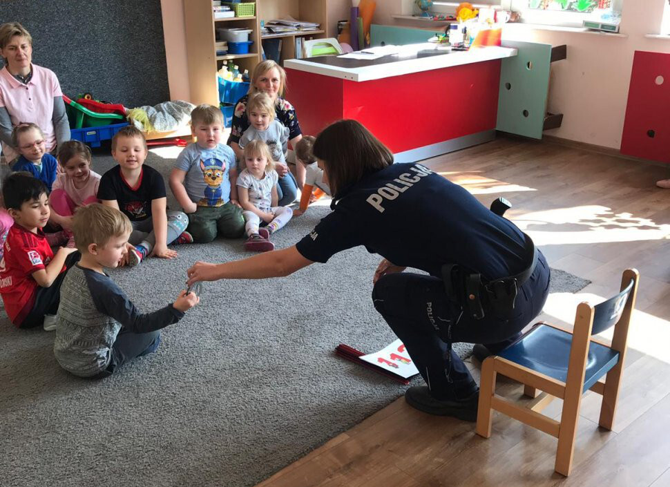 Policjantka z Zespołu Profilaktyki Komendy Miejskiej Policji w Chorzowie st. post Dagmara Białach spotkała się z przedszkolakami jednego z chorzowskich przedszkoli. Podczas wizyty policjantka przedstawiła milusińskim jak na co dzień wygląda praca policjanta oraz przypomniała o zasadach bezpiecznego poruszania się po drogach i konieczności noszenia odblasków po zmroku. Mundurowa uczyła dzieci, jak należy się zachowywać w różnego rodzaju sytuacjach zagrożenia. Przypomniała również numery telefonów alarmowych do służb ratowniczych. Główną atrakcją spotkania była policyjna maskotka Sznupek. Każde dziecko mogło także z bliska zobaczyć elementy wyposażenia policjanta jak i zrobić sobie pamiątkowy odcisk dłoni. Na koniec dzieci otrzymały odblaski.