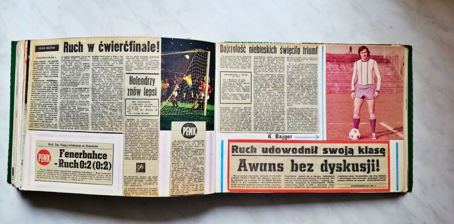 - Okazało się, że poza gazetami znaleźliśmy także mnóstwo zdjęć Ruchu oraz innych drużyn. W sumie to 1400 fotografii. Najstarsze zdjęcia są datowane na rok 1918 jeszcze z Bismarckhutter Ballspiel Club, wyjątkowe jest też nigdy niepublikowane zdjęcie Ruchu z 1920 roku. W tym archiwum znajdowały się również książki, programy meczowe, tysiące dokumentów – wylicza Grzegorz Joszko ze Stowarzyszenia Wielki Ruch.