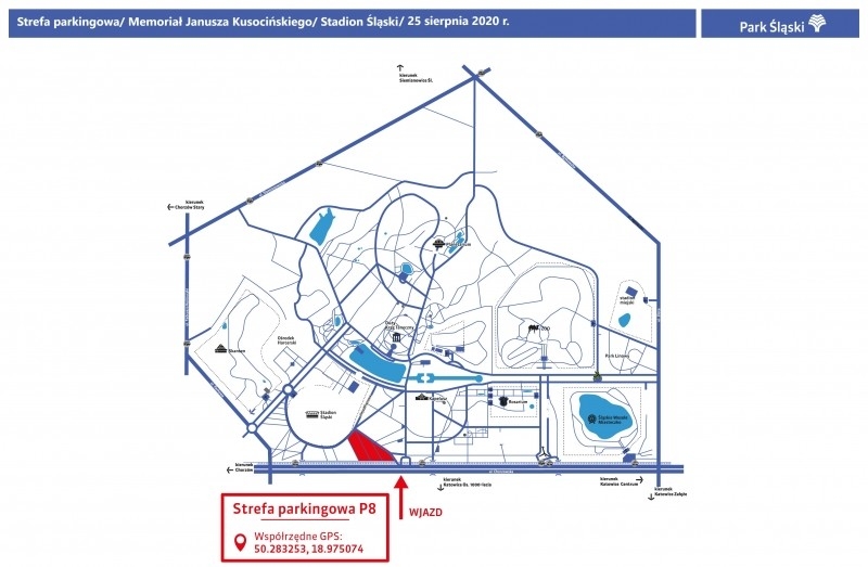 We wtorek (25 sierpnia) na Stadionie Śląskim odbędzie się memoriał Janusza Kusocińskiego. Jeżeli ktoś wybiera się na to wydarzenie samochodem, to zachęcamy do skorzystania ze strefy parkingowej P8, która została zaznaczona na powyższej mapie.