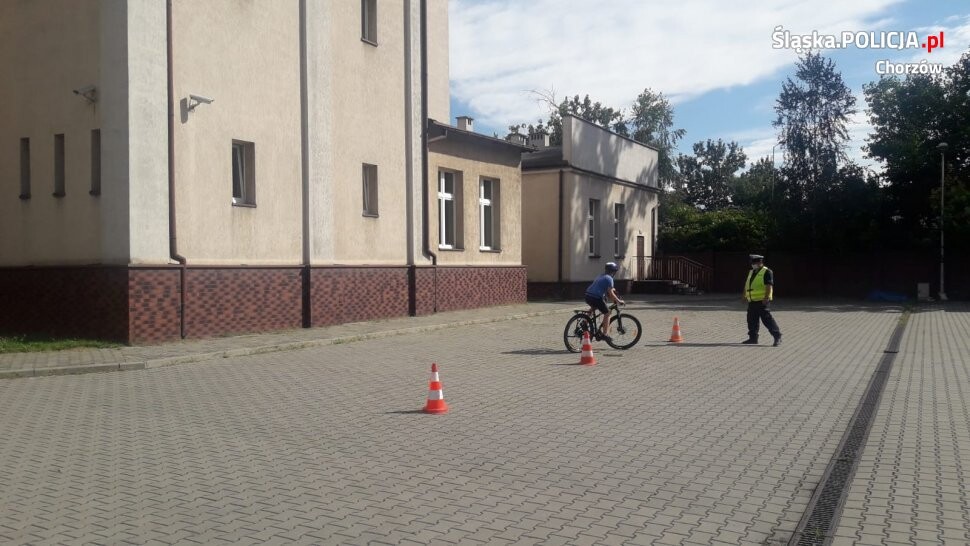 Funkcjonariusze chorzowskiej drogówki przeprowadził egzamin praktyczny na kartę rowerową dla najmłodszych mieszkańców naszego miasta. Sprawdzian umiejętności poprzedzony był prelekcją na temat praw i obowiązków niechronionych uczestników ruchu drogowego oraz bezpiecznego korzystania z dróg przez kierujących jednośladami. Policjanci czuwali nad prawidłowym przebiegiem egzaminu oraz oceniali umiejętności praktyczne młodych adeptów kierownicy. Teraz po zaliczeniu praktyki, z niecierpliwością czekają na wydanie swoich pierwszych uprawnień do kierowania rowerem