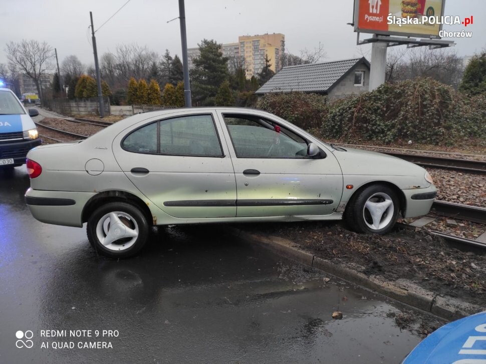 Komendant KP I w Chorzowie, mł. insp. Wojciech Nowakowski w trakcie sobotniego zabezpieczenia meczu, zauważył niebezpieczną jazdę kierowcy, który stracił panowanie nad pojazdem i wjechał na torowisko.
