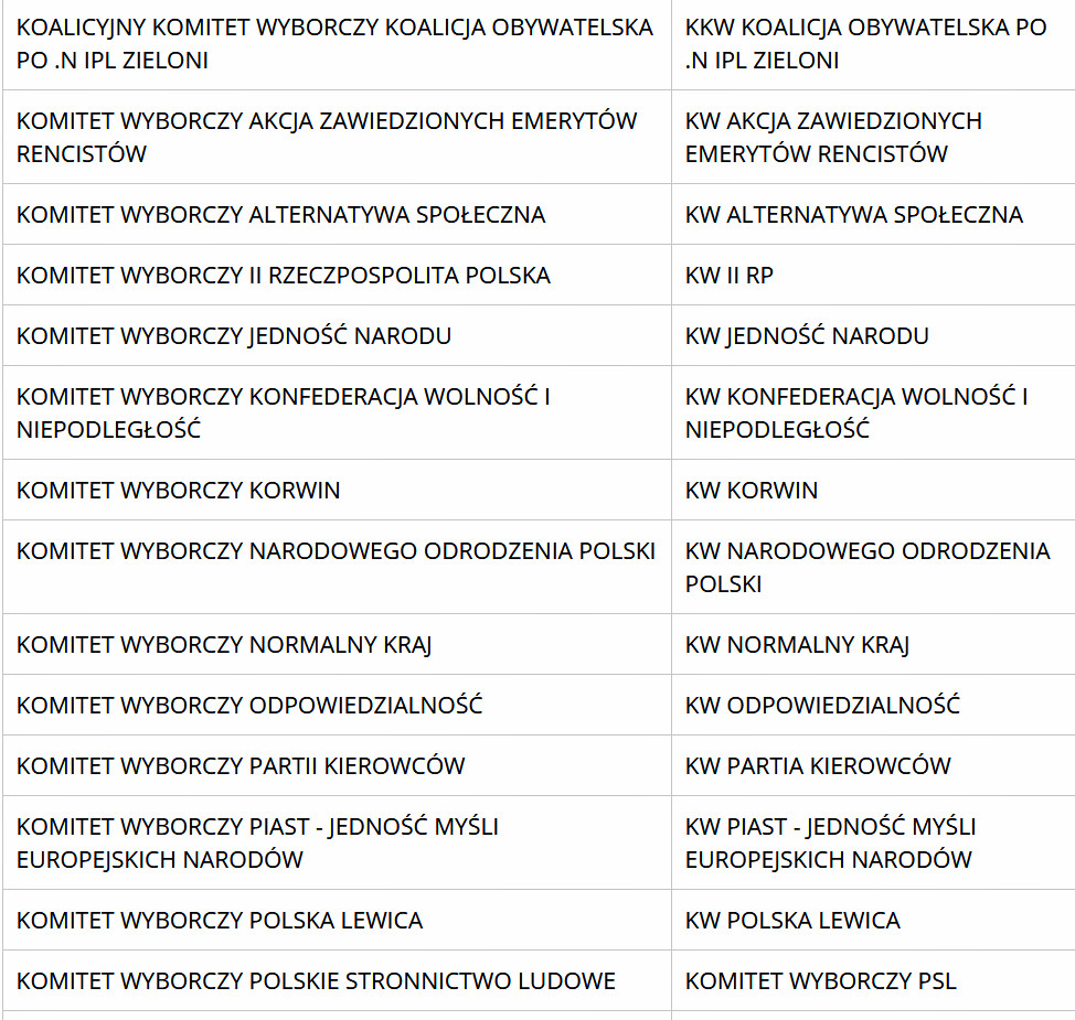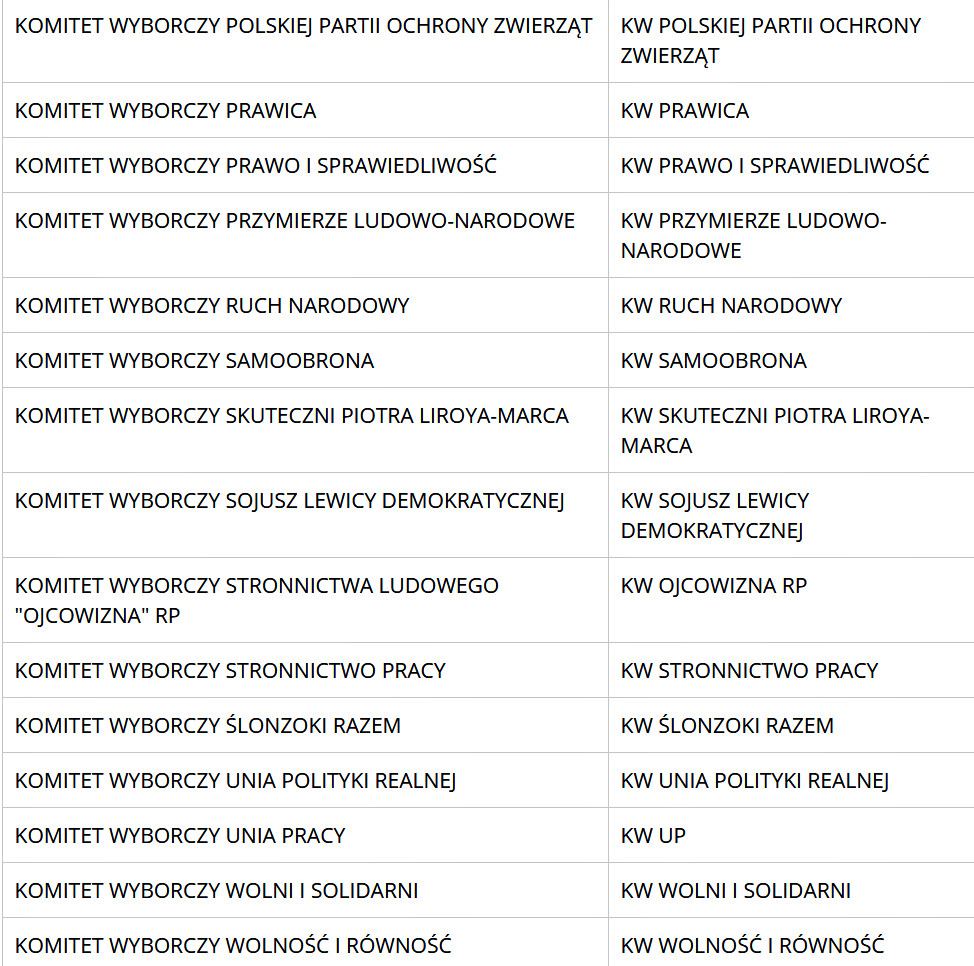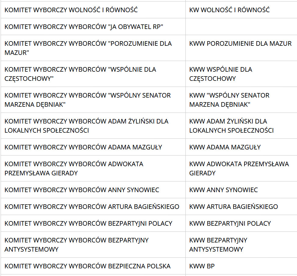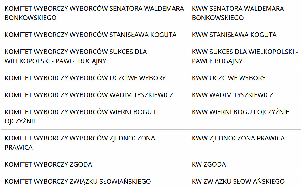 Wśród zarejestrowanych komitetów można znaleźć ciekawe nazwy