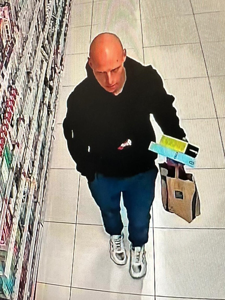 Do kradzieży doszło 8 maja 2023 roku w drogerii przy ul. Parkowej w Chorzowie. Łupem padły dwie szczoteczki elektryczne. Dodatkowo tego samego dnia mężczyzna wrócił do sklepu i chciał ukraść kolejne przedmioty. Tym razem został powstrzymany przez pracownika ochrony. Sprawca był ubrany w bluzę koloru czarnego, granatowe spodnie oraz białe buty. Jeśli rozpoznajesz osobę ze zdjęcia, skontaktuj się z policjantami z Komisariatu Policji II w Chorzowie pod nr tel. 47 85 456 10, lub pod adresem e-mail: [email protected]