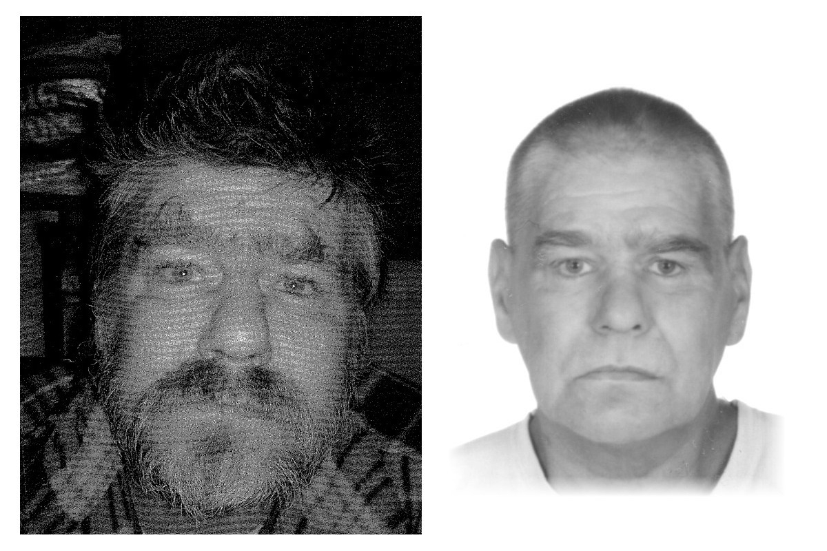 Rysopis zaginionego: wiek z wyglądu 60 lat, wzrost 182 cm, szczupłej budowy ciała, włosy ciemne, siwiejące, może posiadać zarost w postaci brody i wąsów, oczy niebieskie, brwi krzaczaste, nos duży, szerokie uszy, braki w uzębieniu, mężczyzna utyka na jedną nogę.