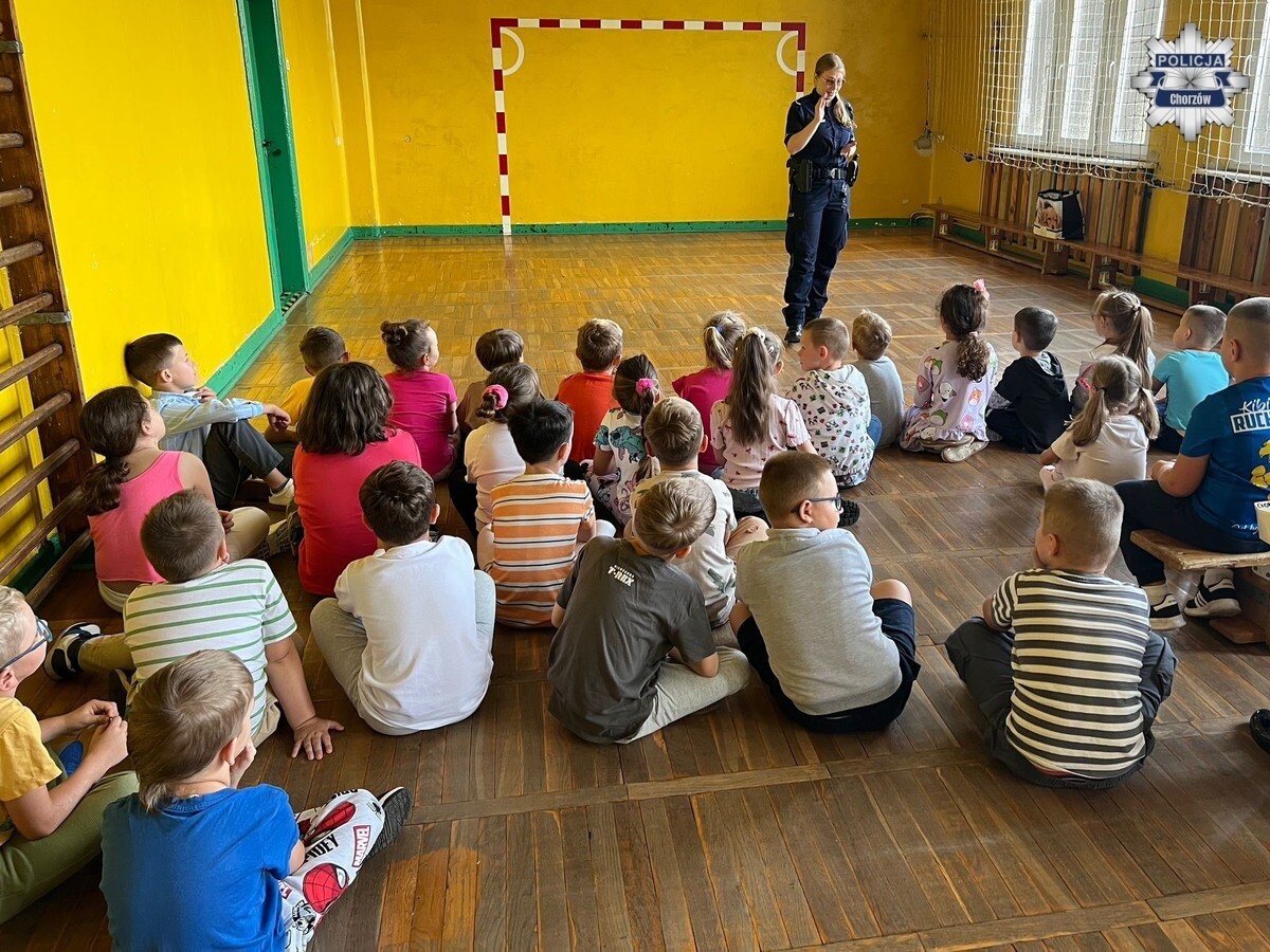 Profilaktycy z Wydziału Prewencji Komendy Miejskiej Policji w Chorzowie odwiedzili Szkołę Podstawową nr 15. Spotkali się z najmłodszymi uczniami, aby porozmawiać o bezpieczeństwie na drodze i reagowaniu w trudnych sytuacjach. Było to kolejne działanie w ramach profilaktyki, które ma uczyć dzieci odpowiedzialnych postaw.