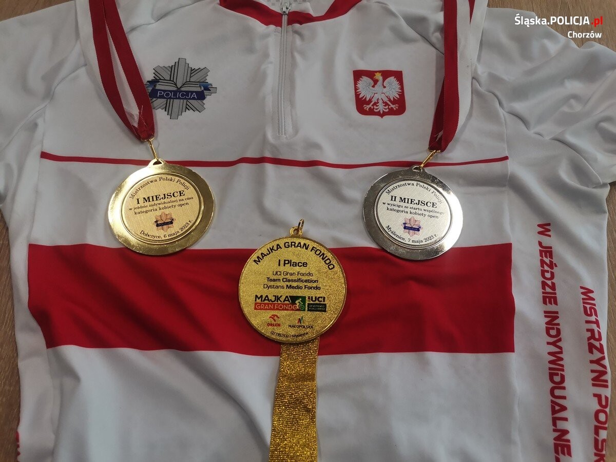 Policjantka z Chorzowa mistrzynią Polski w kolarstwie szosowym policjantów! Z zawodów, które odbyły się na terenie powiatu myślenickiego, przywiozła łącznie 3 medale.