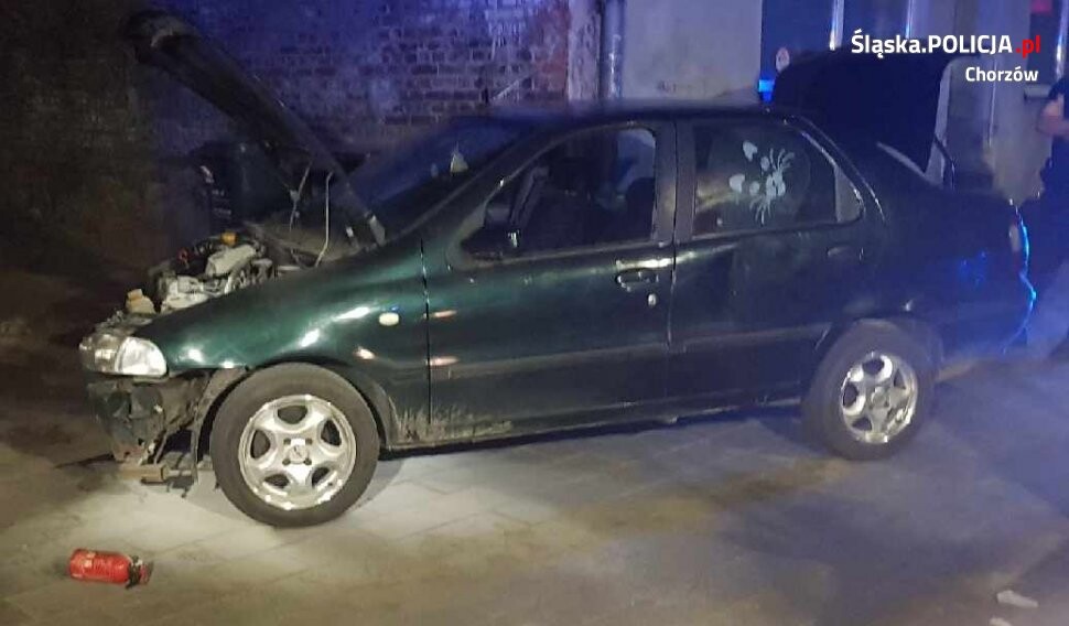 W sobotnią noc policjanci z chorzowskiej drogówki na ul Hajduckiej zamierzali zatrzymać do kontroli drogowej kierującego fiatem, jednakże kierowca nie zareagował. Przyspieszył i zaczął uciekać. Jechał z dużą prędkością ulicami Chorzowa, łamiąc po drodze wszelkie przepisy ruchu drogowego. Na Armii Krajowej stracił panowanie nad samochodem, zjechał na chodnik i ściął drzewo, jednakże pomimo uszkodzeń dalej kontynuował ucieczkę, zdołał jednak ujechać jedynie kilkaset metrów nim został zatrzymany. Chwile później samochód stanął w płomieniach. Dzięki szybkiej reakcji mundurowych nie doszło do tragedii, nim pożar zaczął się rozprzestrzeniać został ugaszony przez policjantów a będące wewnątrz pojazdu osoby zostały ewakuowane. Jak się okazało, mężczyzna uciekał, bo był nietrzeźwy. Badanie alkomatem wykazało, że miał w organizmie ponad promil alkoholu. Dodatkowo w pojeździe znajdowało się jeszcze dwóch pasażerów - również nietrzeźwych.