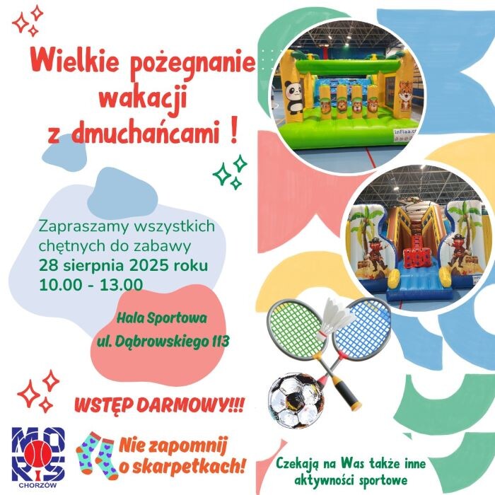 Wakacje powoli dobiegają końca, ale Chorzów żegna je z przytupem! Już w najbliższy czwartek, 28 sierpnia o godzinie 10:00, Miejski Ośrodek Rekreacji i Sportu w Chorzowie zaprasza najmłodszych na radosne i aktywne pożegnanie lata przy ul. Dąbrowskiego 113.