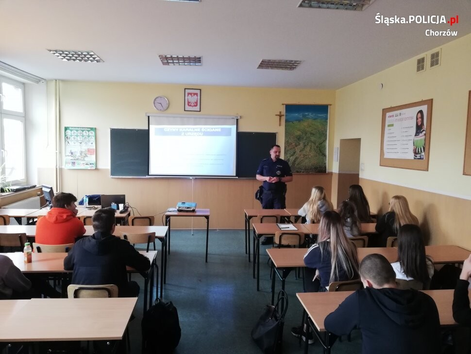 Dzielnicowi z Komisariatu Policji I w Chorzowie przeprowadzili prelekcję dla uczniów klas pierwszych w Centrum Kształcenia Zawodowego i Ustawicznego w Chorzowie.
