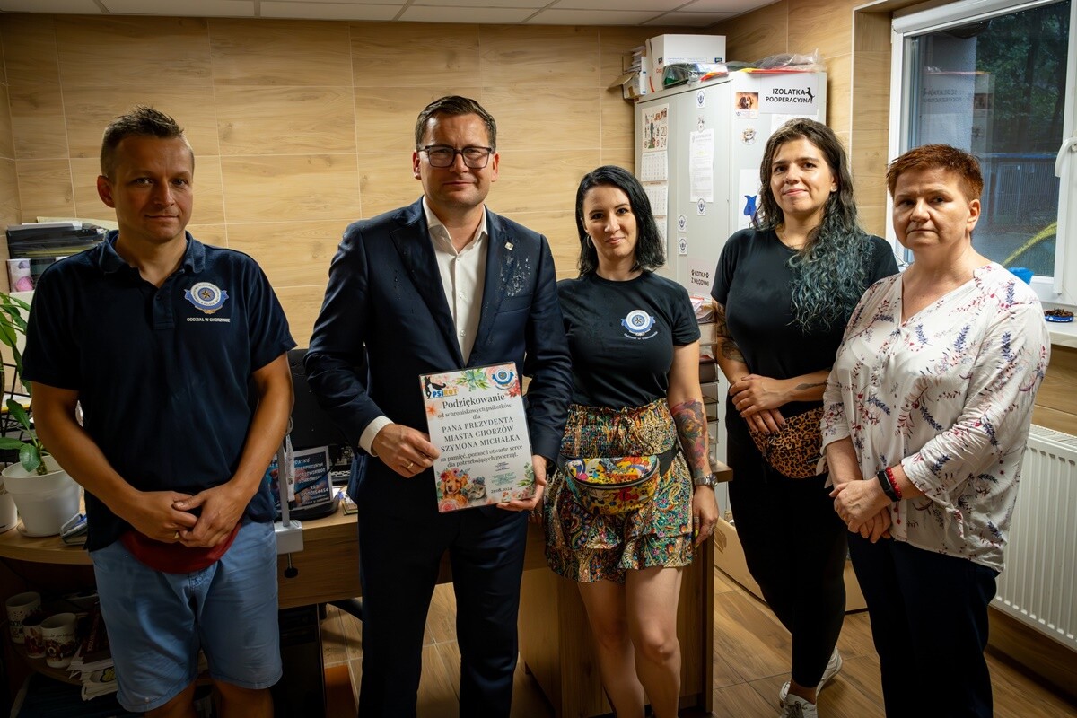Schronisko Psikot od wielu lat prowadzi miejsce przebywania bezdomnych zwierząt. To właśnie tam czworonogi oczekują na nowe domy, które podarują im wiele miłości i dobra. Obecnie w schronisku znajduje się 105 zwierząt - 70 psów i 35 kotów. Prezydent Chorzowa Szymon Michałek podczas wczorajszej wizyty poznał realia, z jakimi zmagają się porzucone zwierzaki oraz jak wygląda codzienna praca pracowników placówki. Prezydent zapoznał się zarówno z kotami jak i pieskami przebywającymi w Psikocie.