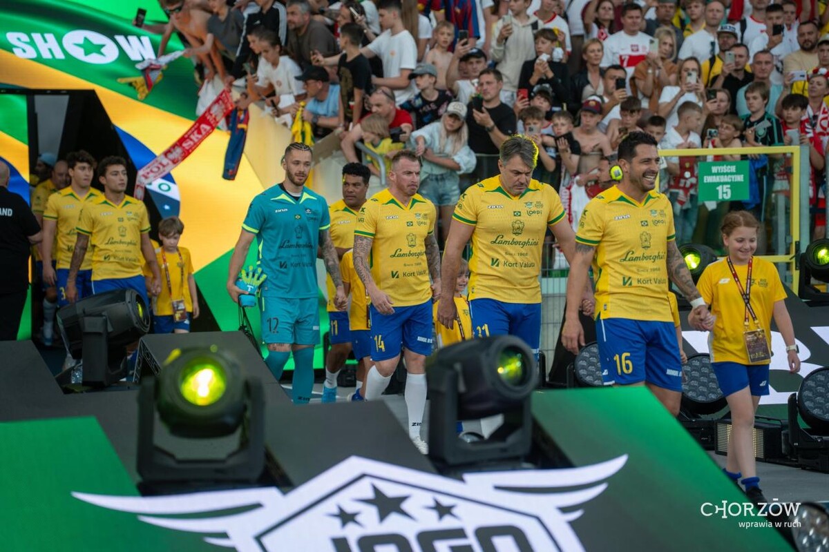 Spotkanie Polska – Brazylia zakończyło się remisem 2:2, jednak to Biało-Czerwoni ostatecznie wygrali w serii rzutów karnych 4:2, co wzbudziło euforię wśród kibiców. Na boisku pojawiły się takie nazwiska jak Ronaldinho, Cafu, Kaka, Jacek Krzynówek czy Jerzy Dudek, a atmosfera przypominała mecze wielkich turniejów.
