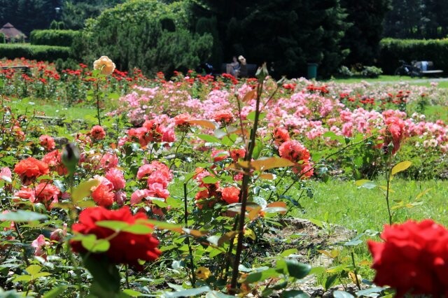 Latem Rosarium jest bardzo chętnie odwiedzane nie tylko ze względu na kwiaty. Otwarta przestrzeń i otoczenie idealnie sprawdzają się podczas opalania, a w altanach grillowych wiele osób spotyka się, aby odpocząć i porozmawiać. Atutem ogrodu są też zbiorniki wodne, które zapewnia kontakt z wodą.