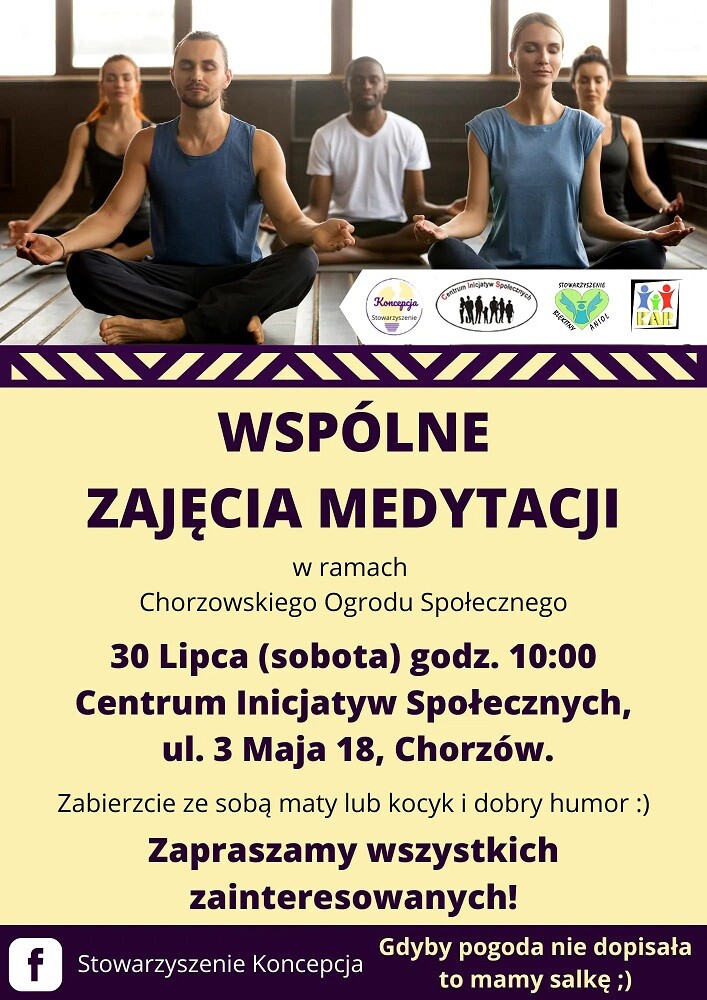 Pierwsze zajęcia chorzowskiego ogrodu społecznego odbędą się już w sobotę 30 lipca o godzinie 10:00 na terenie Centrum Inicjatyw Społecznych przy ulicy 3 Maja 18, podczas których uczestnicy będą wspólnie poznawać tajniki rozładowywania stresu dzięki medytacji.
