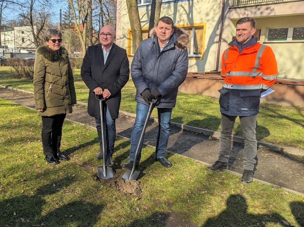 Poza Prezydentem Miasta, w symbolicznym wbiciu łopaty pod rozbudowę obiektu, uczestniczyli Wiceprezydent Marcin Michalik, Iwona Grześkowiak, Dyrektorka Przedszkola nr 7 oraz kierownik budowy - Dawid Skutela z firmy MAXIMUS.