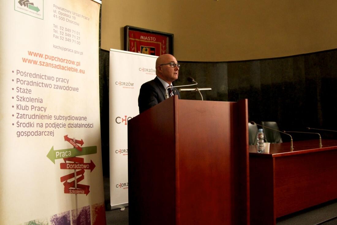 Warto wspomnieć, że są to środki niebagatelne, gdyż ich pula wynosi ponad 10 mln złotych. Rozegraj biznes w Chorzowie to hasło promujące przedsiębiorczość i inwestycje w naszym mieście. Ważnym aspektem pobudzania przedsiębiorczości jest niewątpliwie wzrost zatrudnienia – stąd też pomysł na tego typu spotkanie. Podczas konferencji przedstawione zostały konkretne formy i warunki ubiegania się o dofinansowanie przy tworzeniu nowych miejsc pracy i podwyższaniu kwalifikacji zawodowych pracodawców oraz zatrudnionych pracowników. Zaprezentowano możliwości w ramach Krajowego Funduszu Szkoleniowego oraz nowa, atrakcyjną formę wspierania zatrudnienia osób do 30 roku życia, która przewiduje możliwość refundacji części kosztów zatrudnienia poniesionych na wynagrodzenia oraz składki na ubezpieczenia społeczne.