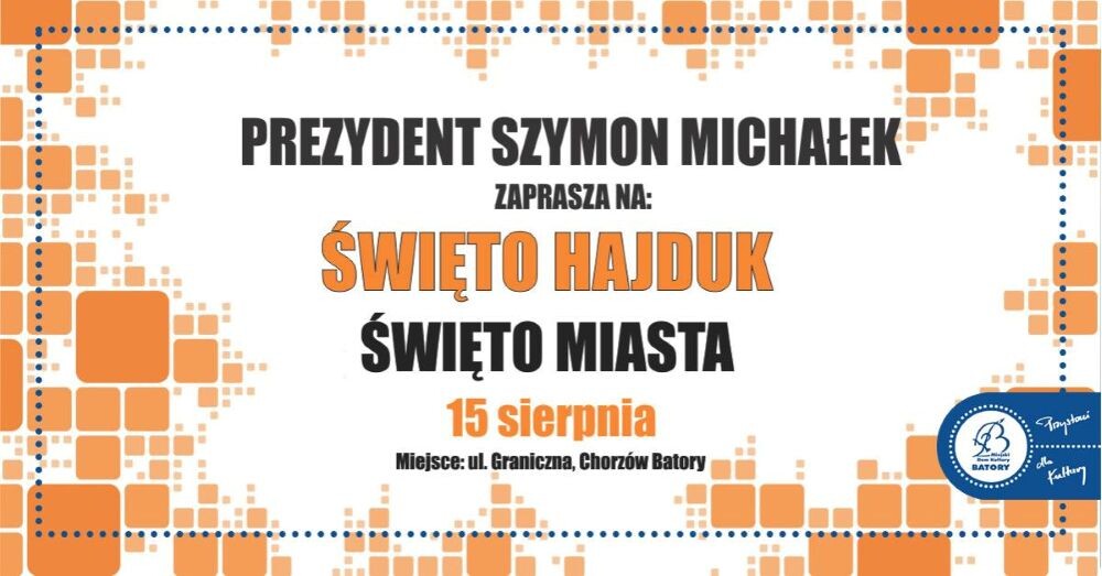 15 sierpnia w piątek odbędzie się Święto Hajduk - Święto Miasta, na ulicy Granicznej przy kompleksie "Hajduki", wracamy po 6 latach! Pomysł na to święto zrodził się 26 lat temu. To będzie czas integracji sąsiedzkiej i świetnej zabawy. - powiedział Prezydent Chorzowa Szymon Michałek.