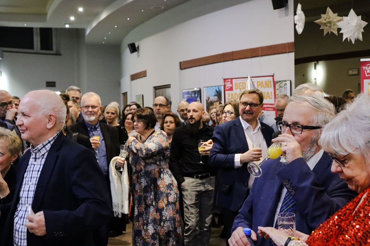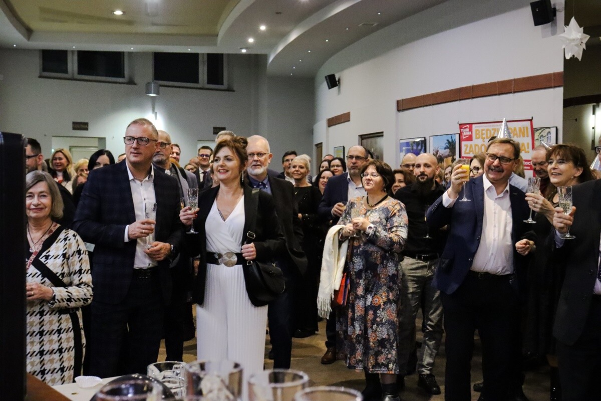 Po spektaklu na gości czekał pyszny poczęstunek oraz szampan, którym wznoszono toast za nadchodzący rok. Ciepła, serdeczna atmosfera sprzyjała rozmowom i wspólnemu świętowaniu, a czas spędzony w gronie przyjaciół i sąsiadów z pewnością dostarczył niezapomnianych wspomnień.
