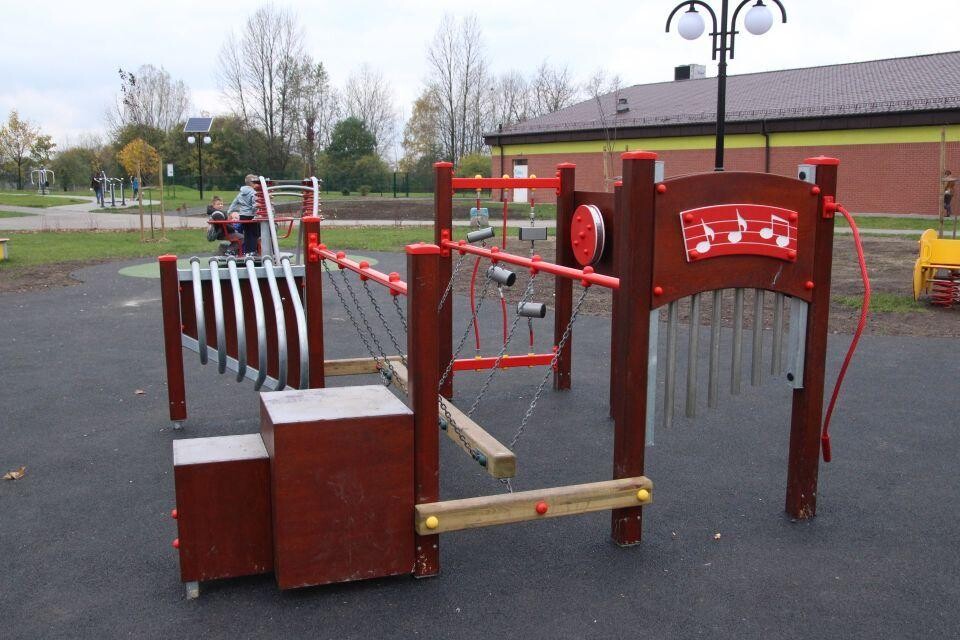 Z kolei na miejscu starego placu zabaw stanął zupełnie nowy, a na jego terenie znalazły się m.in.: integracyjny zestaw zabawowy ze zjeżdżalnią, przejściem tunelowym oraz grami integracyjnymi, a także zestaw zabawowy z instrumentami, podwójna huśtawka z siedziskami dla dzieci starszych i dla maluchów, huśtawka "bocianie gniazdo", karuzela z platformą, piaskownica, bujak typu ważka, kiwak oraz zestaw zabawowy z kolejką zjazdową, dwiema zjeżdżalniami i mostkiem. Pod urządzeniami zabawowymi została wykonana nawierzchnia syntetyczna, a pod zestawem zabawowym z kolejką znajduje się teraz trawnik z rolki. Ustawiono nowe ławki i kosze na śmieci oraz stojaki na rowery.