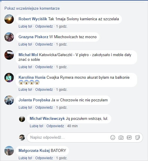 Chorzowianie odczuli wstrząs dość mocno, na Facebooku pojawiają się informacje mieszkańców o miejscach, w których tąpnięcie było nawet widoczne.