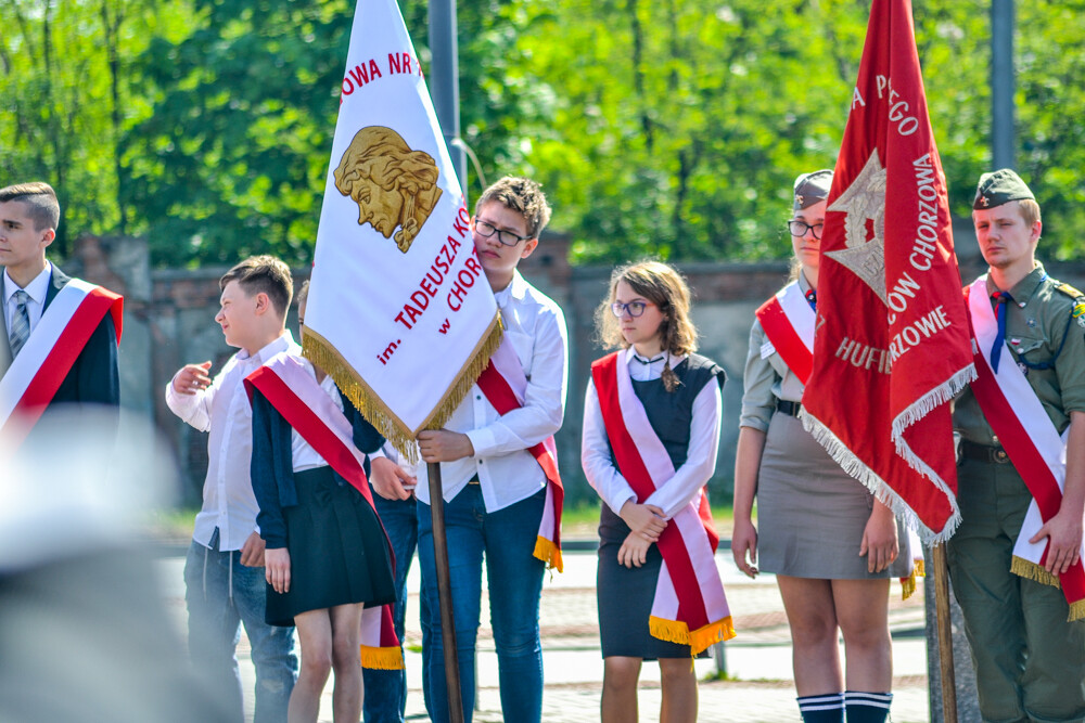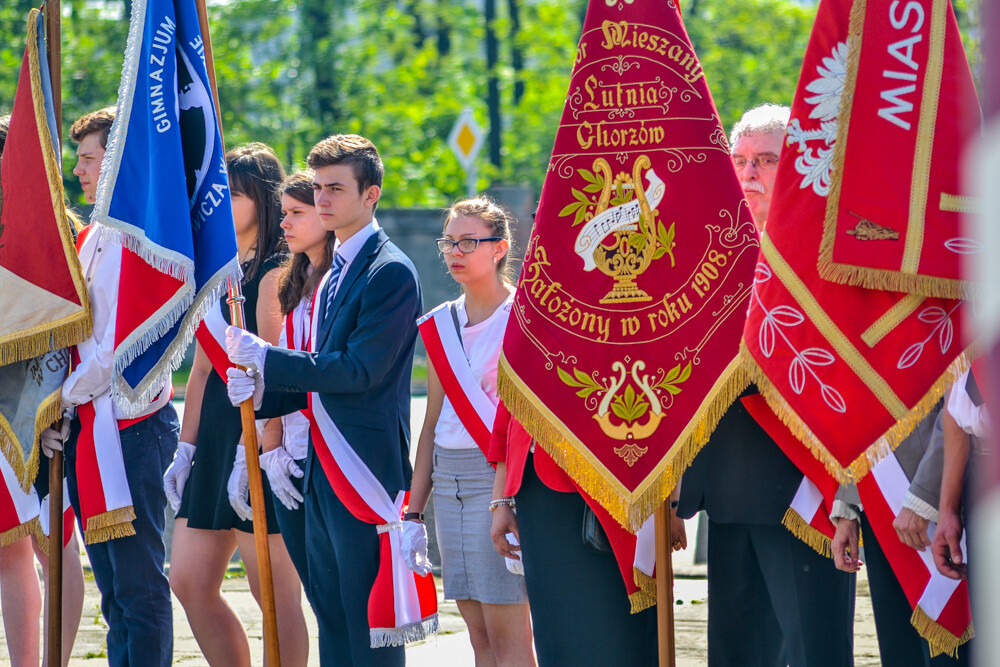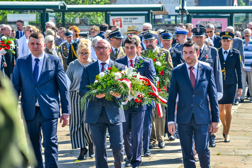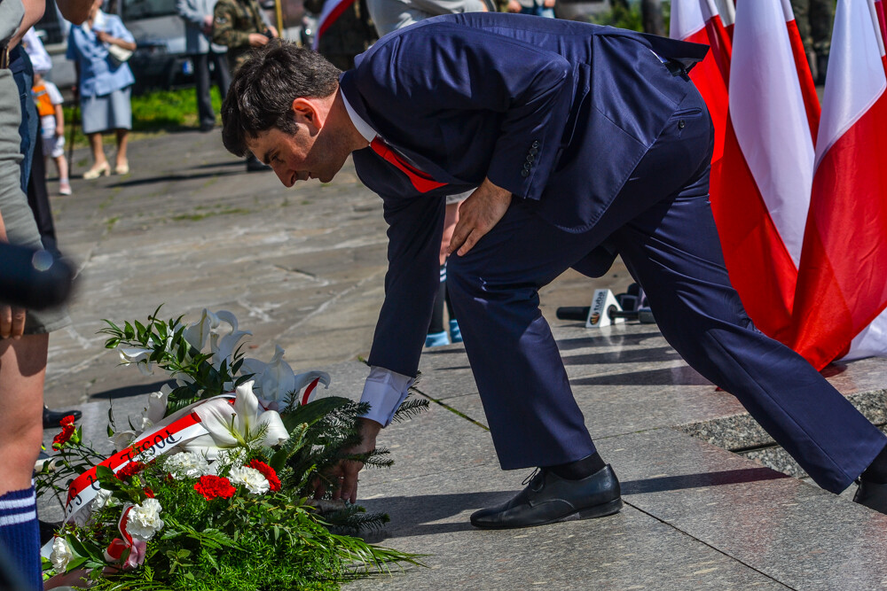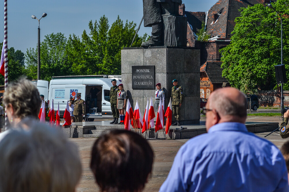 Uroczysta msza i przemarsz na plac Powstańców Śląskich. Urzędnicy, przedstawiciele szkolnictwa, organizacji pozarządowych i mieszkańcy złożyli kwiaty w rocznicę uwalenia Konstytucji.